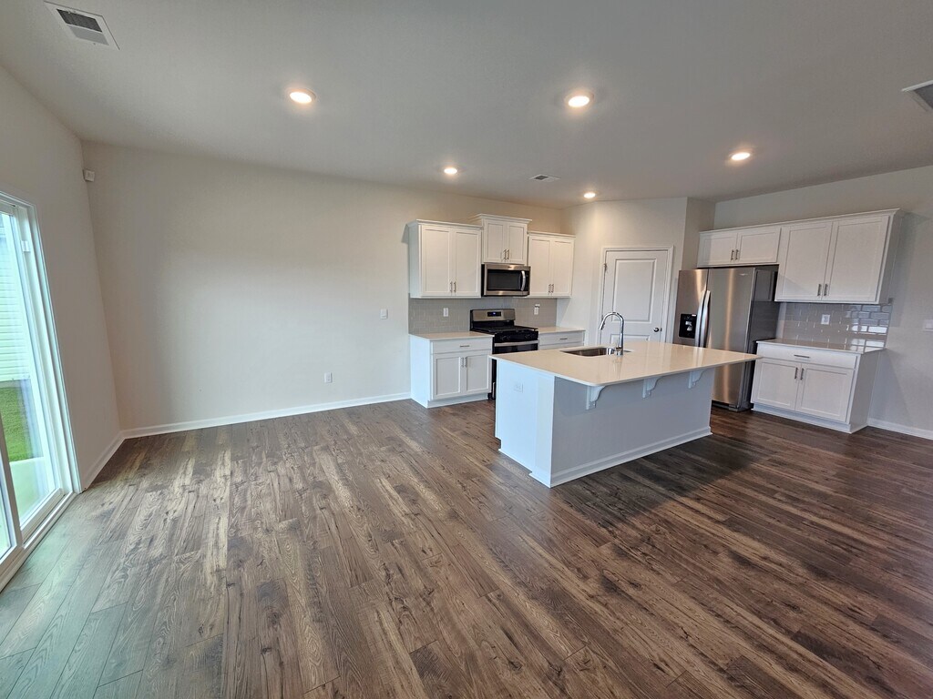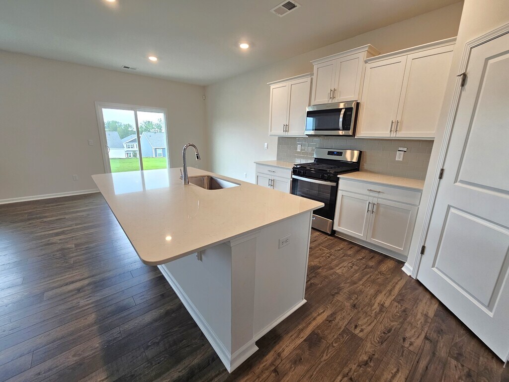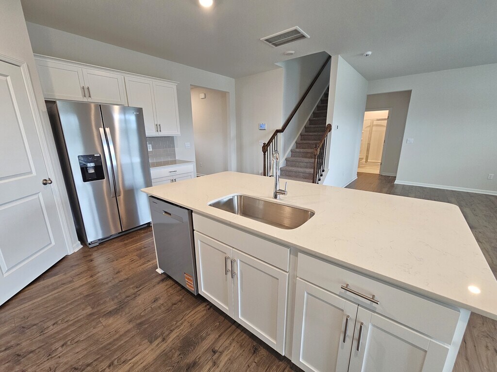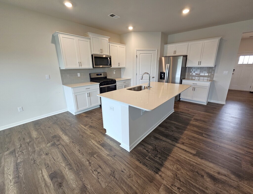 This is an absolutely beautiful 5 bedroom 3 bathroom home with a spacious open concept design. This floorplan features a large home office with glass French doors and tons of natural light, a large family room that's open to the kitchen, and a first floor guest bedroom with access to a full bathroom. The elegant kitchen has all quartz countertops, upgraded stainless-steel gas appliances, recessed lighting, shaker style white cabinets, a large quartz kitchen island, and walk-in pantry. The first floor also features 9ft ceilings and a cozy gas fireplace. Upstairs bedrooms make this home great for a large family. Enjoy the loft as a playroom, relaxing tv area, etc. The owner's suite has a garden tub and shower with double vanities, and a huge walk-in closet. Outside, there is an 8x10 patio with fully sodded yard, which is perfect for hosting or just enjoying the peaceful good weather days! This home in complete with Hardwood Flooring in the main living areas, a 2 car garage, Garage Door Openers, a tankless water heater, built-in pest control system, and a "Home is Connected" smart home technology package. Lots of great energy saving features, even allowing you to control your home with your smart device while away. Located in the desired Hunter's Ridge subdivision which includes amenities like Pickleball Courts, Swimming Pool, Covered Pavilion, Firepit area, sidewalks, and Playground!!