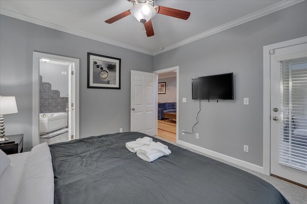 Consider this townhome your home away from home while you visit Fayetteville. This lovely property features 3 bedrooms and 2.5 bathrooms. This property features a 1 car garage, Gigabit Fiber Wi-Fi, and air conditioning. Includes a work desk. The property is an 8-minute drive to Methodist University, an 11-minute drive to Carvers Creek State Park, a 12-minute drive to Fort Liberty, a 14-minute drive to Fayetteville State University, a 20-minute drive to Cross Creek Mall, a 19-minute drive to Fayetteville Station, a 55-minute drive to Southern Pines Station, and a 26-minute drive to Fayetteville, NC (FAY-Fayetteville Regional). The master tub is currently not working. The door code is given on check-in day. [SI]
