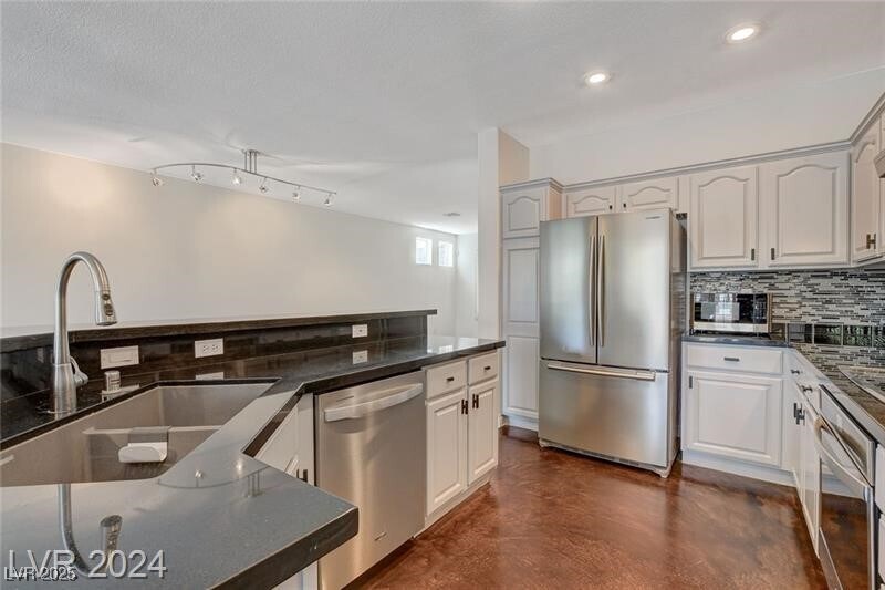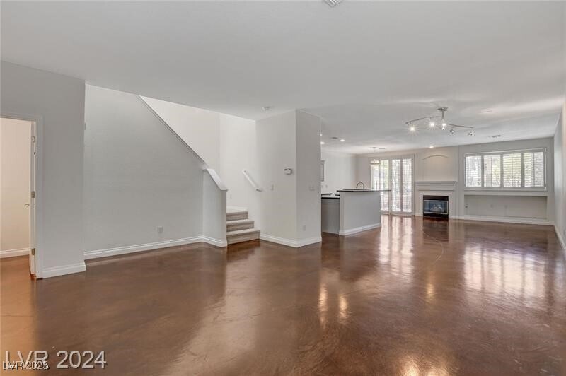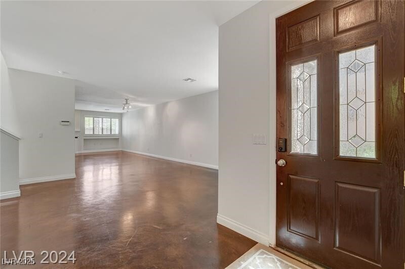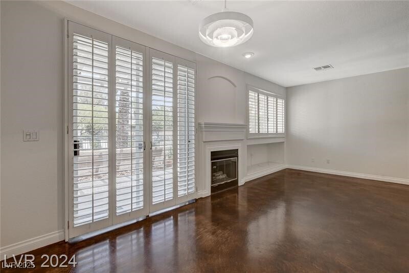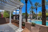 Beautiful Christopher Home in a gated community nestled on TPC Golf Course in Summerlin! This two story condo overlooking the pool features a spacious, open floorplan with high ceilings. Enter into the formal Living Room with beautiful concrete floors. Kitchen is open to the family room with cozy fireplace and features black granite counters, custom tile backsplash, breakfast bar and stainless steel appliances. Large Dining area adjacent to Living Room as well as eat in nook in Kitchen. Primary bedroom is huge with walk-in closet and balcony overlooking the pool. 2nd bedroom has a built-in Murphy bed. 3rd bedroom features a ceiling fan, balcony & walk-in closet. Nice covered patio with BBQ stub for grilling! 2-car attached garage. This unit is just feet away from the sparkling community pool and spa. This Summerlin community is centrally located near shopping, golf, library, trails and easy Summerlin Pkwy access. Water is included in the HOA.