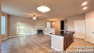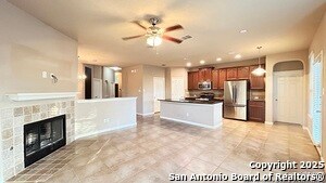 Beautiful 3 Bed, 2 Bath 1795 sq ft Single Story Home. Neutral Colors, Blinds, Ceramic Tile Floors throughout. Carpet only in Beds, Office. Open Floor Plan w/Formal Dining Room, Large Living Room w/Gas Fireplace. Open Kitchen w/Dark Granite Counters, Breakfast Bar. Stainless Appliances: Fridge, Gas Stove, Microwave, Dishwasher. Large Primary Bedroom w/Ceiling Fan, Walk-in Closet. Primary Bath w/Sep Shower/Garden Tub, Dual Sinks. Fenced Yard w/CVD Patio. Comm Pool. Near 151, Loop 410, 1604, Sea World, Lackland.