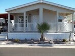 Located in Sunny Crest MHC, a quiet and well-maintained 55+ community located in East Mesa. Enjoy morning coffee or evening sunsets from your large covered front porch with beautiful mountain views. This clean and well-kept 3-bedroom, 2-bath, 1200 sq ft home feels open and comfortable inside with multiple windows bringing in natural light throughout the day. The living room is spacious and bright with wood floors. The kitchen offers wrap-around counter space and plenty of cabinets, giving you real room to cook and store your kitchen items. All three bedrooms are good sized and can fit full bedroom furniture, making it ideal for guests, an office, or hobbies. Neutral colors and flooring make the home move-in ready. There is also a separate entry/laundry area for added functionality. Sunny Crest also offers community amenities including a swimming pool, relaxing spa, and a clubhouse with pool tables. Residents may also enjoy optional social activities held throughout the month, providing opportunities to meet neighbors and stay active while still enjoying the quiet atmosphere of the community.