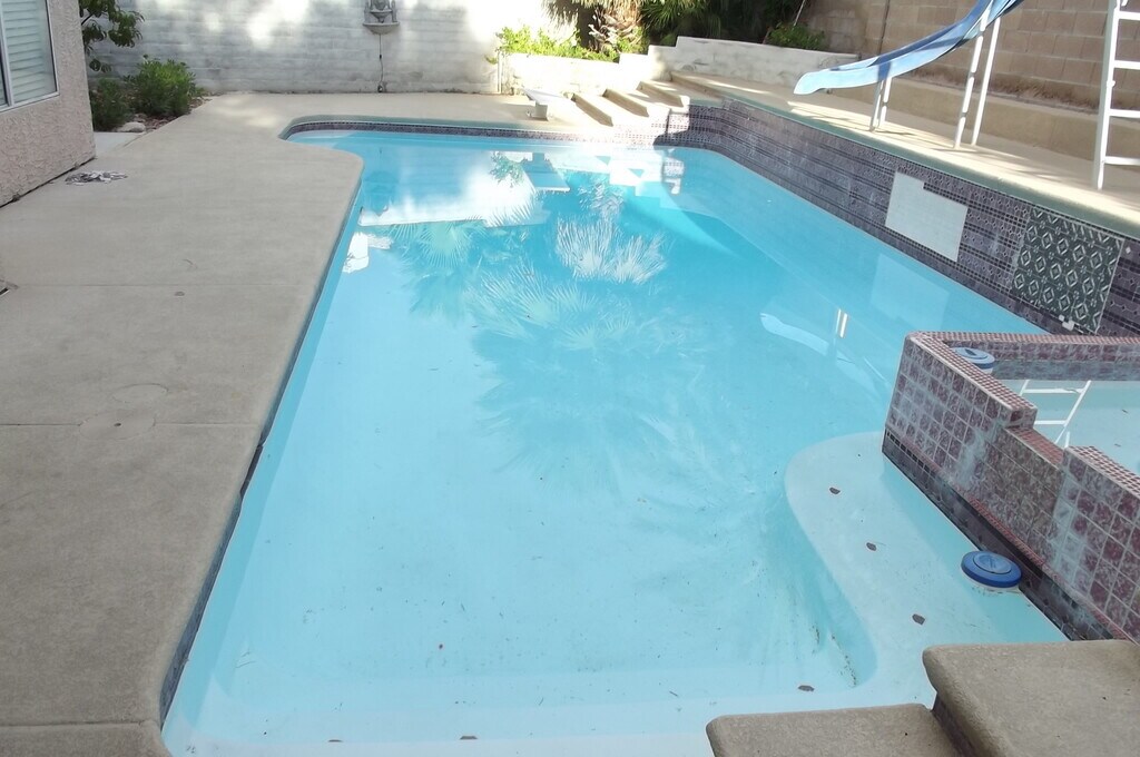 This house is full of extras. Wooden and tiled floors, curved stairway, bar area, 4 fireplaces, covered patio, large swimming pool, spa and side.
