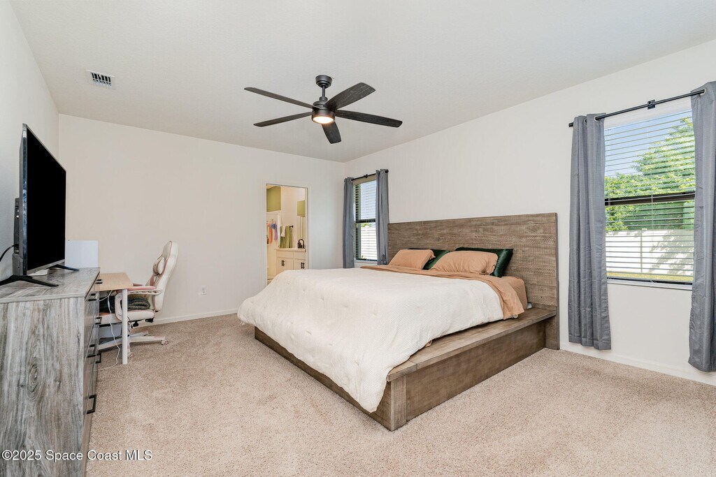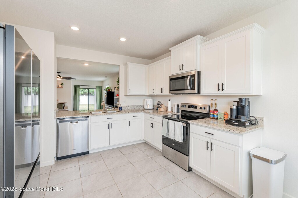 This charming home offers 1738 sqft of living space across three bedrooms and two bathrooms inside a gated community ensuring privacy and security. The property features an open concept layout,perfect for relaxed living and entertaining. The kitchen boasts granite countertops and a cozy breakfast nook,providing ample space for meal preparation and casual dining. The primary bedroom includes a walk-in closet and a bathroom with a double vanity and bidet. The additional two bedrooms are well-proportioned sharing an upgraded bathroom featuring a quartz-topped vanity and a bidet. Throughout the home,smart ceiling fans and light switches add convenience and modern touches. The backyard is fully fenced with vinyl fencing and features a sprinkler system for both the front and back yards. A garage refrigerator is included as well as storm shutters. The home was constructed approximately three years ago,ensuring a relatively new and well-maintained property.