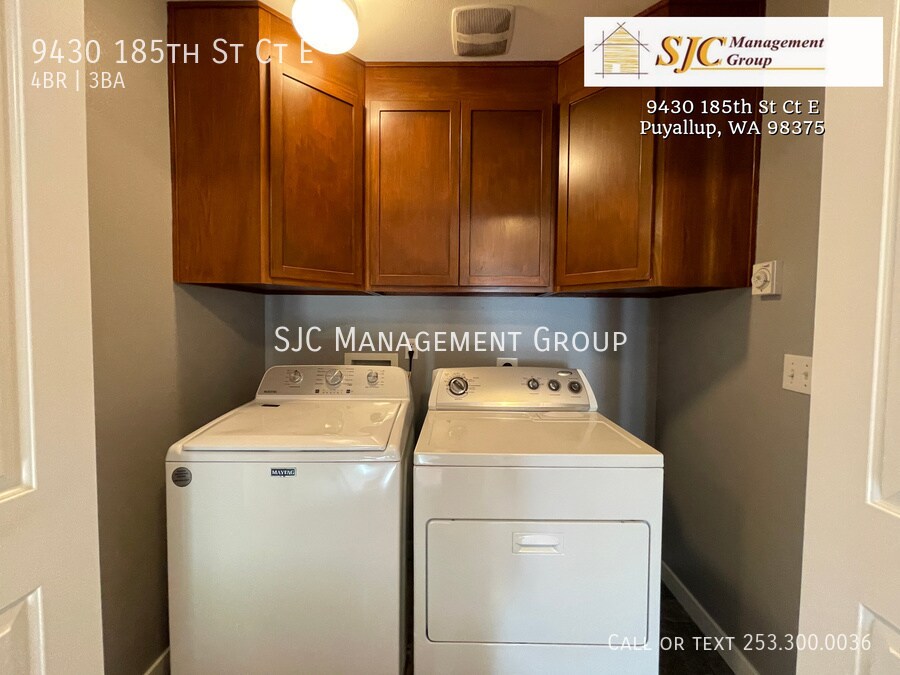 Beautifully Refreshed 4-Bedroom Home in Silver Creek – South Hill Puyallup Like-new 4-bedroom home located in the desirable Silver Creek neighborhood of South Hill Puyallup. This well-maintained property has been extensively updated, with the roof, water heater, furnace/AC, kitchen appliances, doors, plank flooring, and interior paint all new or replaced within the last 2–3 years. Main Floor: Open and functional layout featuring both living and family rooms with a cozy gas fireplace, plus a dedicated dining area. The fully equipped kitchen offers ample storage and workspace. A convenient powder room sits just off the entry. Sliding glass doors from the dining room lead to a concrete patio and fully fenced backyard—great for outdoor use. Walkthrough pantry connects to the 2-car garage, which also includes an exterior access door. Upstairs: A washer and dryer are provided in a hallway closet at the top of the stairs. The spacious primary suite includes a private ensuite bathroom with soaking tub, separate shower, dual vanities, private toilet area, and a large walk-in closet. Three additional bedrooms are located upstairs—two with walk-in closets—along with a full bathroom. NO SMOKING For more information or to set up a viewing please contact the leasing team at SJC Management Group today! Pets [breed and size restrictions may apply] are allowed, pet screening required. Approved pets will incur a pet mitigation fee (between $150 and $350) at move-in + a monthly pet fee of $35-$75, max two pets. Please note showings can be scheduled online at any time. After hours or weekends, showings must be scheduled and confirmed by our staff before the end of the business day. Our business hours are Monday-Friday from 9 am to 5 pm. We are closed for all major holidays. ADDITIONAL TERMS: Required $85 at move in and additional $35 per month Resident Benefit Package offers an array of advantages. With this package, you'll enjoy convenient benefits such as regular delivery of furnace filters and additional perks designed to enhance your renting experience. UTILITIES: Not Included DEPOSIT REQUIRED: $3045