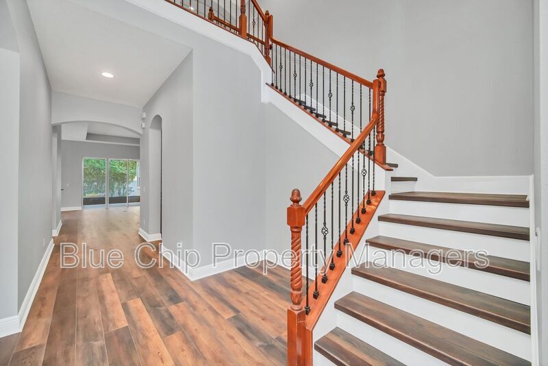 This stunning Key West–inspired residence is truly a must-see and offers the perfect blend of coastal charm, thoughtful design, and modern luxury. Originally showcased as a model home for the community, this exceptional property is loaded with premium upgrades and designer touches throughout. At the heart of the home is a gourmet kitchen featuring solid-surface countertops, upgraded cabinetry, and a layout ideal for both everyday living and entertaining. Additional highlights include hardwood flooring, a Nest smart thermostat, and numerous high-end finishes that elevate the home’s style and comfort. The primary suite is conveniently located on the first floor, providing privacy and ease of living, while the fifth bedroom offers flexibility as a bonus room, game room, or home office to suit your lifestyle needs. Thoughtfully designed living spaces flow seamlessly, creating an inviting and functional floor plan. Enjoy the Florida lifestyle to the fullest with balconies on both the first and second floors and a spacious screened-in lanai, offering multiple outdoor spaces to relax, unwind, or entertain. The large, fenced corner lot provides ample room to add a pool and is ideally situated just steps from the community park and playground. Located in the quiet yet highly desirable Thornhill community, this home offers both tranquility and convenience. Just minutes from the Windermere area, residents enjoy easy access to premier shopping, dining, major highways, and world-renowned attractions, including Disney. This remarkable home combines elegance, location, and lifestyle—an opportunity not to be missed. Additionally, all residents of Blue Chip Property Managers will benefit from the Resident Benefits Package (RBP) for just $50.00 per month. This comprehensive package includes liability insurance, credit-building services to help enhance your credit score through timely rent payments, identity theft protection up to $1 million, HVAC air filter delivery (for applicable properties), and a move-in concierge service that simplifies utility connections and home service setups. You’ll also have access to our premier resident rewards program, on-demand pest control, and much more. More details about these benefits will be provided upon application.