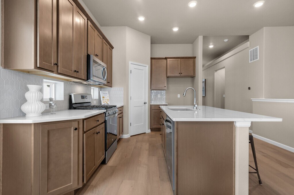 FOR SALE OR RENT - Welcome to this spacious 4-bedroom 3-bathroom home at Wolf Ranch. This beautiful residence, known as the Solstice model, complete with 3 Tandem Car Garage, offers both style and convenience. The inviting Great Room is finished beautifully with engineered hardwood floors, a floor outlet, fan, and a gas fireplace featuring a stunning stacked stone surround. The Kitchen is a chef's delight, featuring quartz counters, staggered cabinets, a pantry, a large island with additional seating, stainless steel appliances, a gas range, microwave, dishwasher, washer and dryer hookups. The Dining area is perfect for hosting meals and creating memorable moments with family and friends. The main level includes the Primary Suite, offering a 3/4 bathroom and a spacious walk-in closet for your comfort. Additionally, a second bedroom or study with a walk-in closet, a full bathroom, and a convenient laundry room complete the main level. Venture to the finished lower level, where 9' ceilings enhance the sense of space. This area is designed for entertainment, featuring a spacious Family room and game area, two bedrooms, a full bathroom, a storage room or potential future bathroom, and a utility room—complete the lower level. The home is equipped with modern amenities, air conditioning, a tankless water heater, a 96% energy-efficient furnace, making it an energy-rated residence. Sorry, no pets. Located in the desirable, low-maintenance community of Revel Terrace at Wolf Ranch, this neighborhood offers a community center, dog park, hiking or biking trails, lake/pond, and a playground area! There is a one-time lease administration fee of $69 and a monthly residential benefits package fee of $35 per month. Qualifying criteria: 600 or above credit score(individual applicant), and income should be at least 2X the monthly rent. Management is a dedicated fair housing provider and will assist all persons without regard to race, color, creed, sex, religion, national origin, familial status, marital status, handicap, ancestry, or any other protected class as defined by state and federal fair housing laws. Applicant has the right to provide TriStar Property Management with a Portable Tenant Screening Report (PTSR) that is not more than 30 days old, as defined in § 38-12-902(2.5), Colorado Revised Statutes; and 2) if Applicant provides TriStar Property Management with a PTSR, TriStar Property Management is prohibited from: a) charging Applicant a rental application fee; or b) charging Applicant a fee for TriStar Property Management to access or use the PTSR.