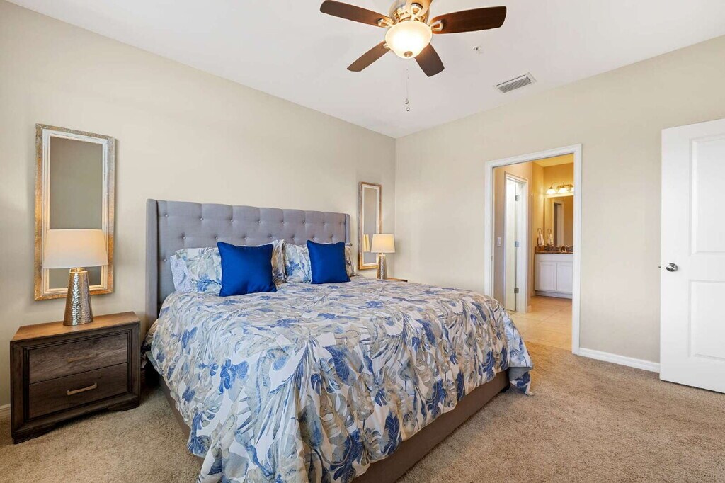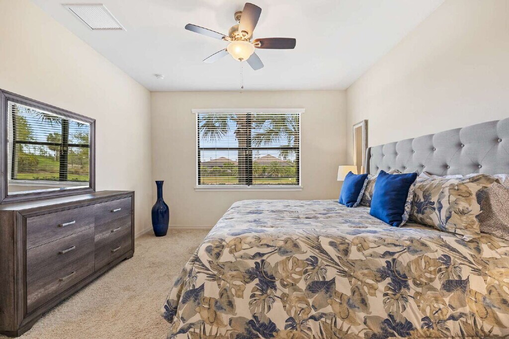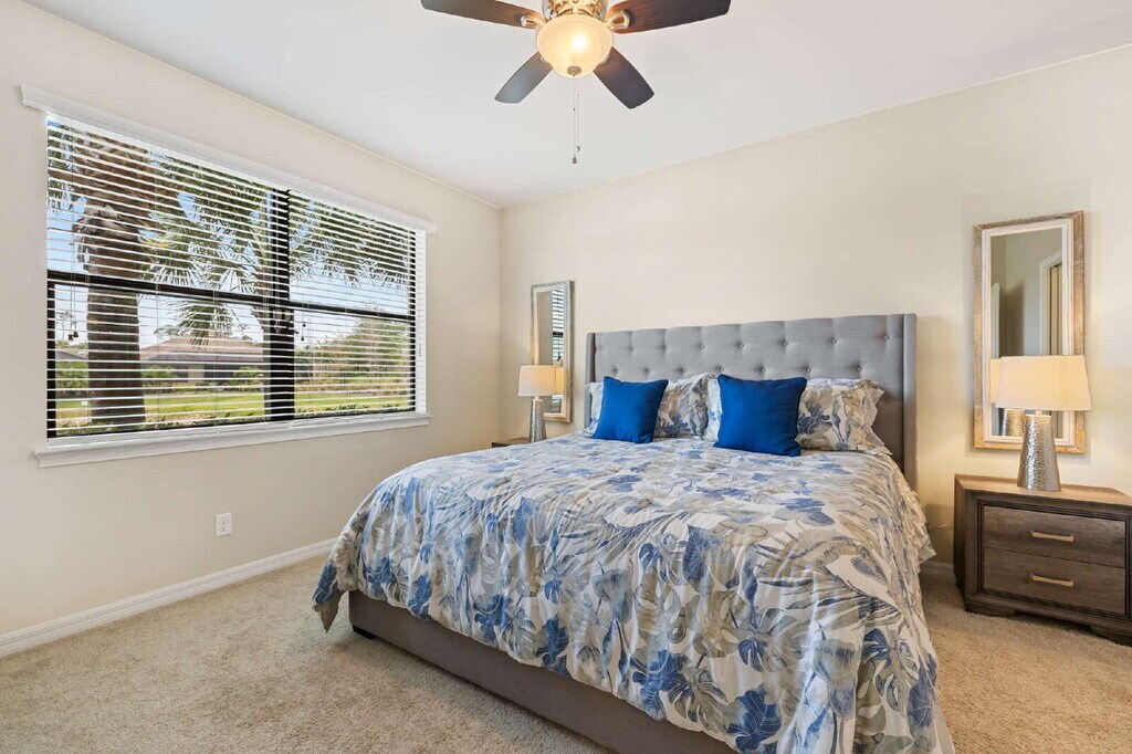 AVAILABLE OFF SEASON JULY 1- NOVEMBER 30 (3 MONTH MINIMUM), 2026 AT A REDUCED PRICE. JANUARY AND FEBRUARY 2027 ALSO AVAILABLE AT $7,500/MONTH. FULLY FURNISHED 1st Floor condo in Esplanade - no stairs!! 2 bedrooms plus den and two bathrooms. The den is enclosed with a sleeper couch for your guests! King and queen beds in bedrooms. Kitchen is fully equipped for your stay. Carport for parking. The den is enclosed with a sleeper couch for your guests! Enjoy the beautiful views of the lake from the lanai! Esplanade is an amenity rich community in Naples. Resort-style pool, cabanas, Bahama bar, restaurant, coffee shop, dog park, tennis, pickleball, state of the art fitness center, spa, salon - you name it, they got it! Close to the beaches, I75, 2 shopping centers with restaurants, nail salons, yoga studio, etc. just a couple of miles down the road. Sorry no dogs allowed.