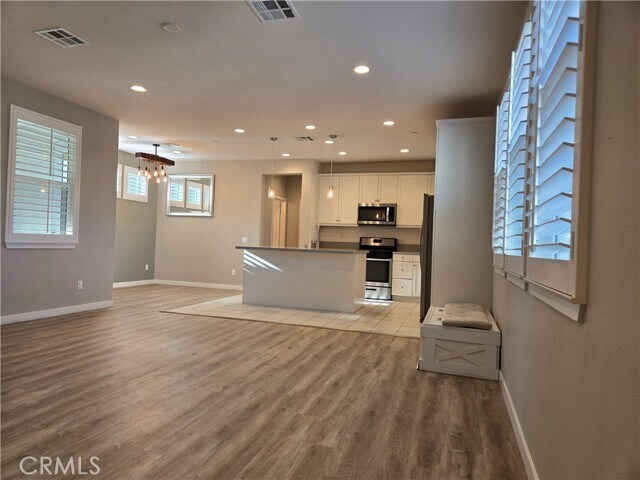 Come to enjoy the contemporary and resort lifestyle at The Resort Community in Rancho Cucamonga. This is a beautiful DETACHED condo individually located in the back line with no one above, down, or attached to you. The front entrance and attached 2-car garage are on the first floor. All the living spaces and bedrooms are on the 2nd level. The staircase is a work of art as you come in. Going upstairs, the living space in the middle and bedrooms are on each end. Wide-open floor plan with galore upgrades including custom paint, waterproof luxury vinyl flooring and modern lightings, etc. One powder room by the stairs for your guests. The gourmet kitchen has quartz countertop, large island, modern lighting, shaker-style cabinets and stainless steel appliances. The dining area leads to a cute private balcony. The right end is a large main suite with a stylish barn door between the room and ensuite bathroom. The ensuite bathroom has a large walk-in closet and double sink vanity. The laundry closet is by the main suite. The left end is two bedrooms and one full bath. The Resort Community amenities include a clubhouse, pool, Jacuzzi, yoga room, recreation and game plaza, fitness center, outdoor lounge, kitchen, BBQ, large and small dog play areas, business center, cabana, bocce ball court and ping-pong tables. The new modern, healthy and happy living is waiting for you! MLS# IG25195301