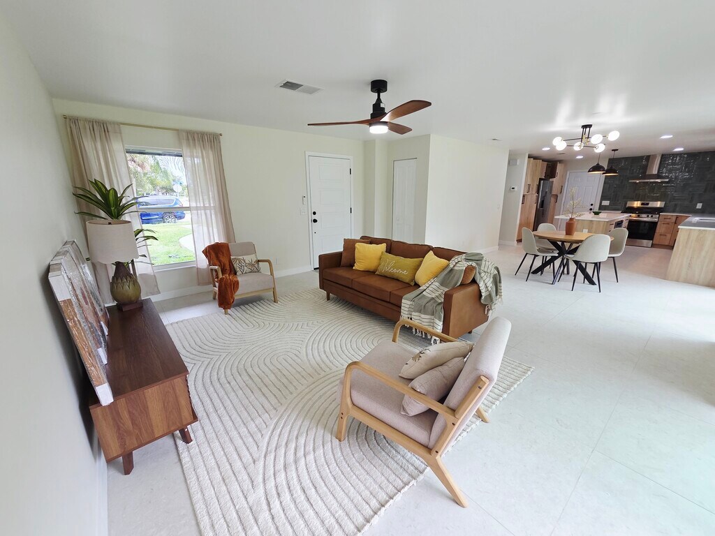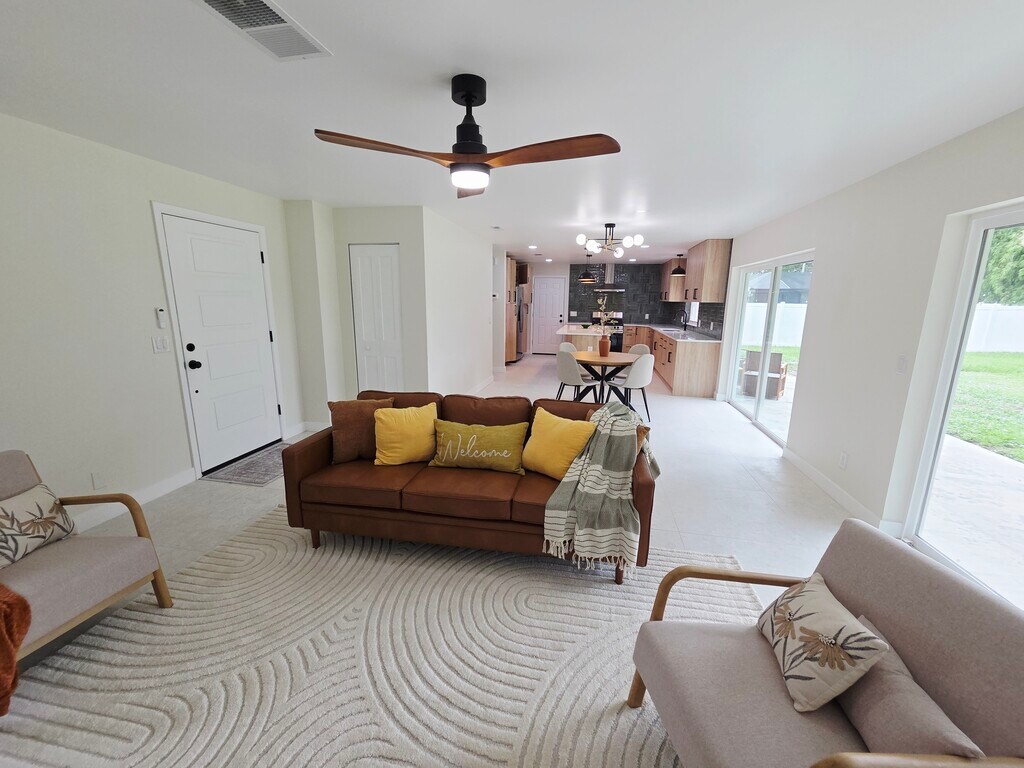 Amazing completely renovated 3 bedroom, 2 bathroom mid century modern Rockledge house in the Buckingham at Levitt Park subdivision. Amenities included: open floorplan, central air, central heat, new dishwasher, new stainless steel appliance, renovated kitchen and bathrooms, new washer dryer and large fenced yard. All new sewer, electrical and roof. Walk to Larry L. Schultz Park. Close to I-95, Viera shopping and restaurants, historic Cocoa Village and Cocoa Beach. No Utilities included. Not furnished. Pets allowed with restrictions. Date Available: Nov 1st 2025. $2,550/month rent. $2,550 security deposit required. $55 application fee. $250 pet fee. Please submit the form on this page or contact Trevor Glennon at to learn more.