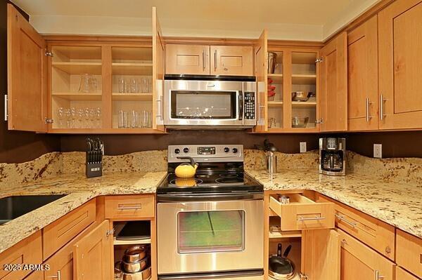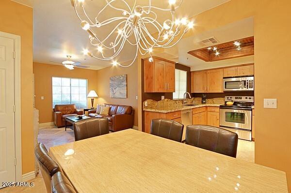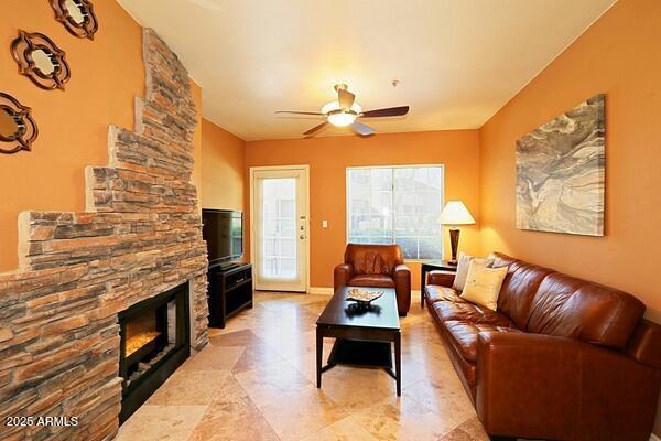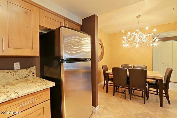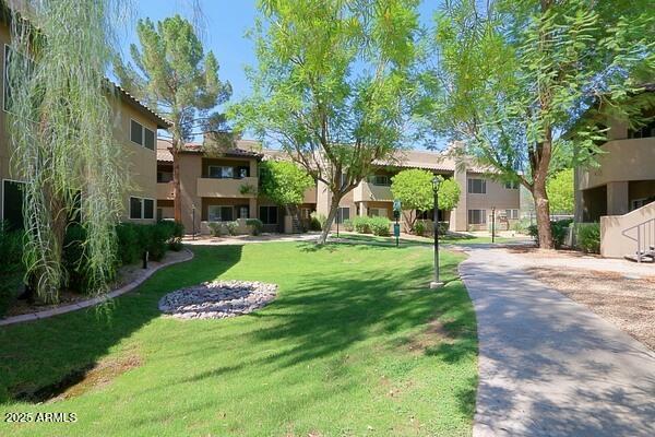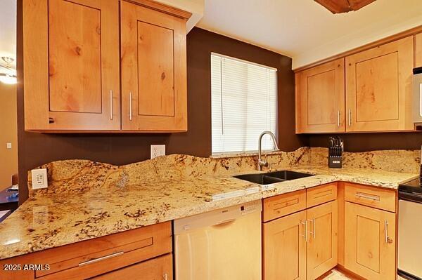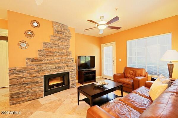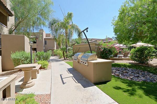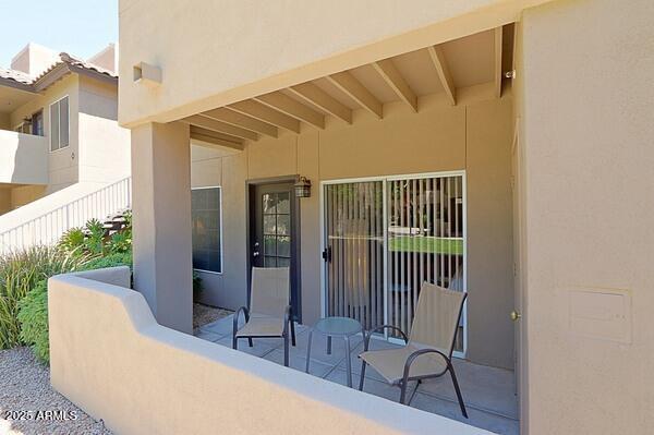 Contemporary and cool fully furnished condo in the very desirable community of Aventura in Scottsdale! Enjoy sipping coffee on your private patio as you watch the full panorama of the rising sun. Artfully decorated,yet super comfortable,you'll be proud to call it home...no matter how long or short your stay. Amenities galore! Including 3 community pools,with the fitness center,tennis court and clubhouse. Take the opportunity to enjoy a pleasant desert evening outdoors on one of the BBQ grills conveniently located through-out the lush landscaped grounds. This contemporary and fully furnished 1 bed/1 bath,main level condo offers granite counter tops,travertine flooring,in unit washer/dryer and assigned covered parking.
