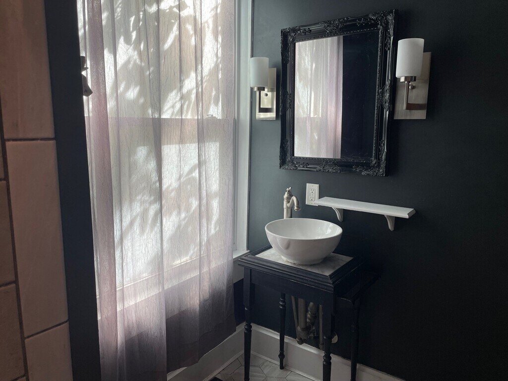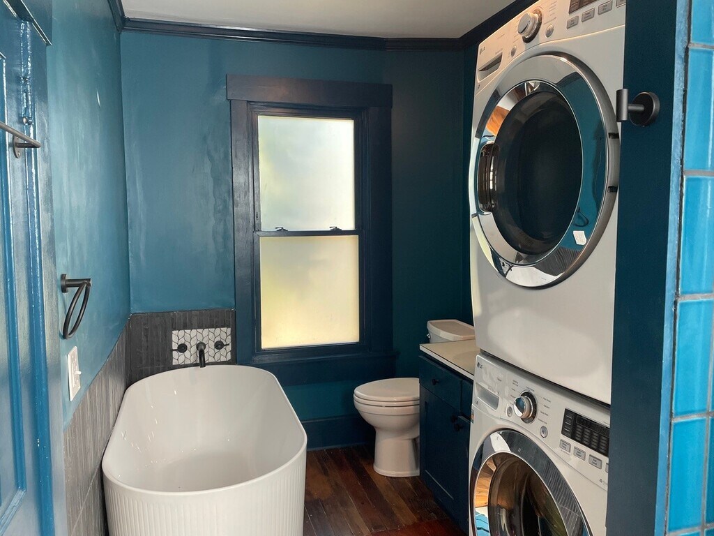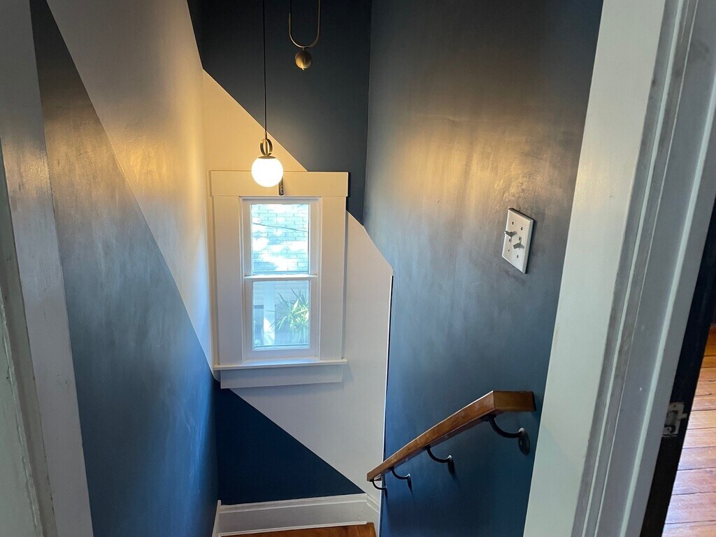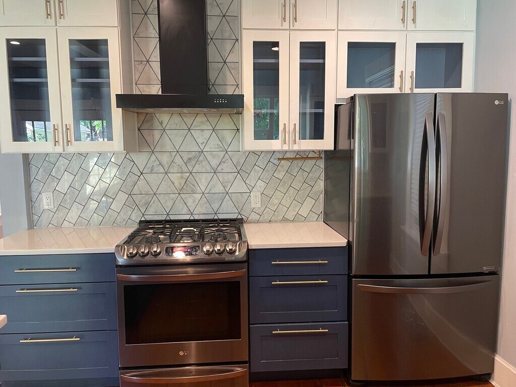3 BR, 2 bath home within easy walking distance of all the Short North as to offer. Front porch with swing, living and dining rooms with exposed brick decorative fireplaces, a built-in media center and a showcase kitchen welcome you in. Kitchen features custom designed cabinets, tilework, and light fixtures, ultra-quiet built-in Bosch dishwasher, black-stainless fridge and gas stove, and marble-look quartz countertops. French doors overlook the back yard, deck, garden area, and fire pit. A full bath with tile shower and pantry featuring motion activated lights adjoin the kitchen. Upstairs you will find 3 bedrooms with features such as frosted glass closets, exposed brick chimney, modern ceiling fans, and built in shelfing. The primary bath offers a spa experience with an oversized soaking tub and glass and tile enclosed rain shower as well as stacked washer and dryer. Other amenities include central air, storage space in basement with outside entrance, fully fenced back-yard, and tile-lined litter box enclosure with cat-door entrance off the upstairs hall. Approximately 1558 square feet. Pets allowed for additional fee. Smoke-free property. Sub-letting is not permitted. Tenant responsible for gas, electric, water, trash, ground care, snow removal.
