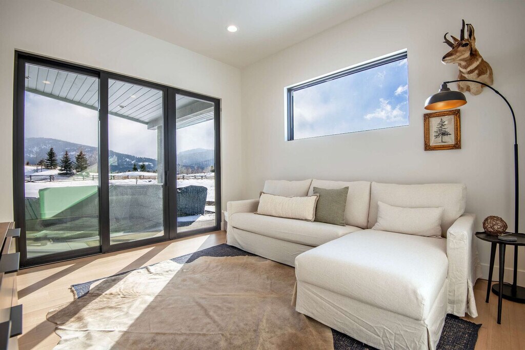 The advertised rate of $12,849/month is the lowest available price, based on a 30 day(s) stay with a move-in date of March 16, 2026. Rates vary depending on the duration of stay, season, and other parameters. For exact pricing and additional pricing components, please visit our website and enter your desired move-in and move-out dates. The rate is applicable when billed upfront; it can be higher if billed in multiple payments. Feel at home in Antelope Abode, a luxury mountain base camp located in Victor at the base of Teton Pass. This brand-new 4-bedroom home offers easy access to Jackson Hole Mountain Resort, Grand Targhee, Grand Teton, and Yellowstone. Designed for families and groups, it features elevated finishes and warm gathering spaces. This cozy-modern mountain home features a bright, open-concept main living area filled with natural southern light, a 75” Frame TV, and a sleek propane fireplace. The fully equipped kitchen offers modern appliances, generous prep space, and a spacious island. After a day of adventure, soak in the private hot tub on the patio. Two bays of the three-car garage are available for guest use. Located in Victor’s sought-after Timberline Loop neighborhood, this home offers unobstructed mountain views and quick access to downtown Victor, where you’ll find local markets, breweries, coffee shops, and dining. Grand Teton National Park’s Primary Entrance is just 44 minutes (29 miles) away, and Yellowstone National Park is reachable via the South Entrance in 2 hours 1 minute (81 miles) or the West Entrance in 2 hours 3 minutes (105 miles). Grand Targhee Ski & Summer Resort is 36 minutes (22 miles) away, and Jackson Hole Mountain Resort is 36 minutes (25 miles). Jackson Hole Airport (JAC) is 48 minutes (33 miles), Idaho Falls (IDA) is 1 hour 21 minutes (67 miles), and Bozeman (BZN) is 3 hours 43 minutes (194 miles). Quiet hours are from 9 pm to 8 am, and guests should be respectful to the neighbors. Events, parties, and large gatherings are not allowed. Smoking or vaping is prohibited in the home or on the decks, and a charge will be applied if butts are found on the property. Fines will apply for violations including but not limited to leaving garbage in the house or litter on the grounds, failure to disclose or clean up after pets, smoking in the house or garage, failure to follow house rules and respect posted signs, failure to follow check-out procedure, mistreatment of the hot tub, or violations of local laws. A minimum $500 fine will be applied for smoking/vaping/marijuana in the house, violation of house rules, posted signs, laws, or failure to vacate at check-out time. [SI]