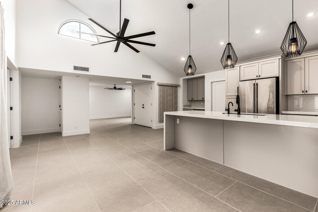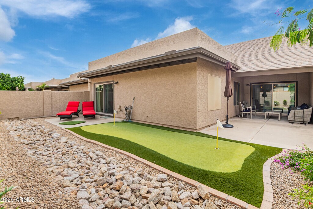 Welcome to this beautifully remodeled single-level patio home,offering an open and bright floor plan that's perfect for modern living. This stunning 3BR/2BA,patio home features a spacious living area with large tile flooring throughout. The chef's kitchen is a true standout,with a large island,modern finishes,stainless steel appliances,& an open layout ideal for entertaining. The home includes a two-car attached garage. The private back patio is your personal oasis,complete with lush landscaping,a putting green,and a covered sitting space for year-round enjoyment. Located in the heart of Scottsdale,this home offers easy access to the 101 Freeway. You'll also be just steps away from the Scottsdale community's recreational walking and biking pathway. This home is completely..... move-in ready and is the perfect combination of modern design,comfort,and convenience.