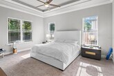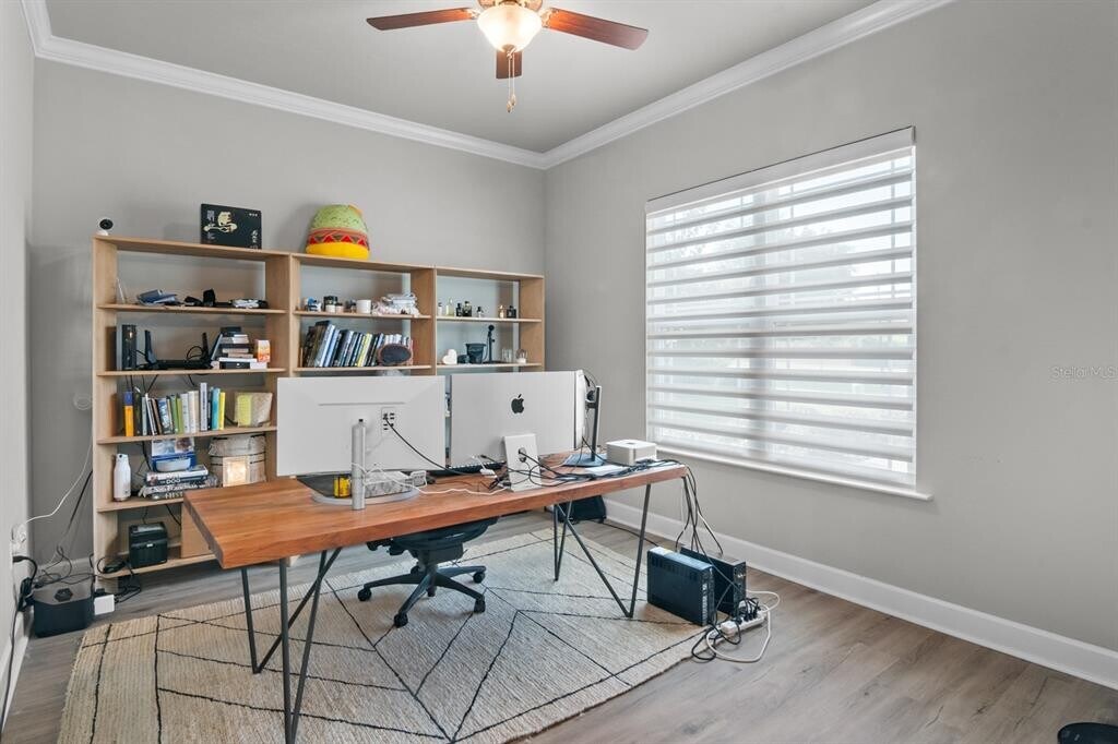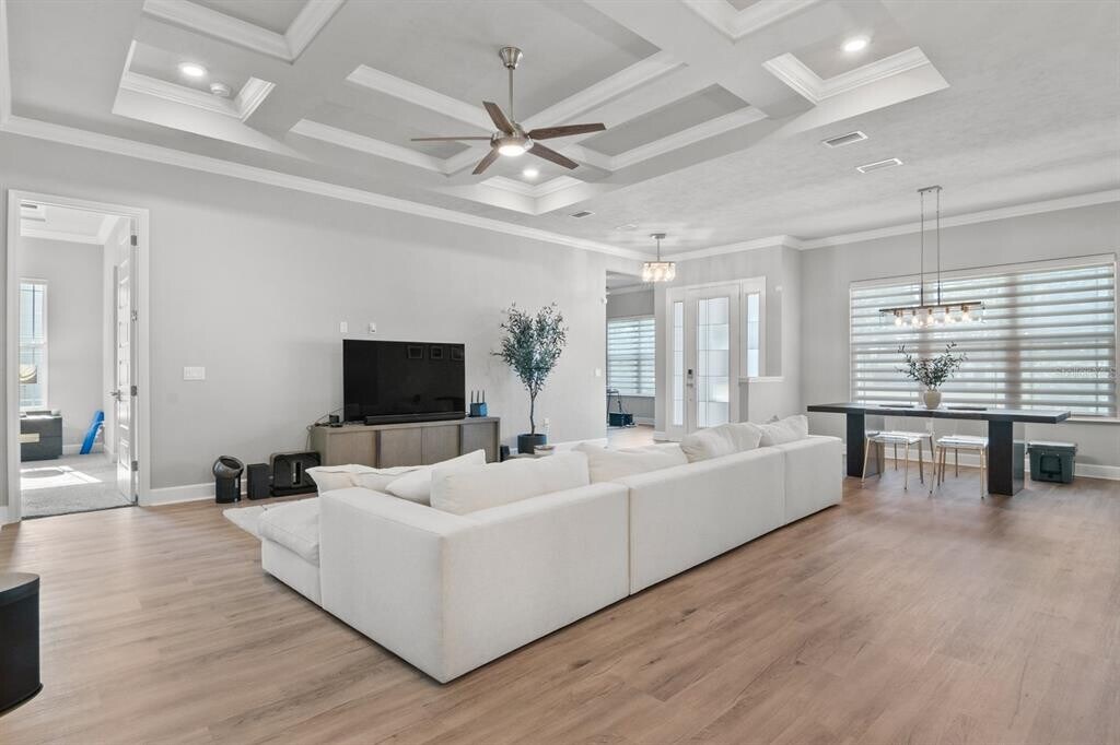 Exquisite luxury Lugano showcase model home 4-Bedroom 3-bathroom plus office with Premier Upgrades & Elegant Design Step into refined living with this beautifully crafted 2,348 square-foot home,where sophisticated design meets everyday comfort. Boasting four spacious bedrooms,three full bathrooms,and a versatile flex room,this residence offers a thoughtfully designed layout ideal for both relaxation and entertaining. The heart of the home features an open-concept living area enhanced by luxury vinyl plank flooring and a stunning tray ceiling with crown molding,creating a grand yet inviting ambiance. The gourmet kitchen showcases quartz countertops and an upgraded stainless steel appliance package,perfect for hosting or enjoying a quiet evening at home. Step outside to your private screened enclosed lanai,ideal for enjoying Florida’s beautiful weather in comfort and style. The three-car garage with distinctive prairie windows adds both function and curb appeal,while included front-yard landscaping maintenance ensures a picture-perfect exterior year-round. From top-tier finishes to thoughtful conveniences,every detail of this home reflects luxury and craftsmanship. Discover elevated living-inside and out. MLS# GC535605