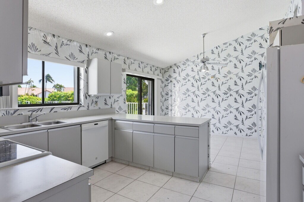 Stunning Lakefront Pool Home in Sun Valley - 3BR/2BA - 2,300 Sq Ft,Discover the ultimate South Florida lifestyle in this magnificent 3-bedroom,2-bathroom lakefront pool home in desirable Sun Valley,Boynton Beach. This meticulously maintained 2,300 sq ft residence is located near A-rated schools and within walking distance to houses of worship. The home features a striking entryway with floor-to-ceiling mirrored walls and soaring vaulted ceilings throughout. The open floor plan showcases neutral tile and plush carpeting,with a step-down family room and oversized windows capturing breathtaking lake views. The bright kitchen boasts all-white cabinetry,clean countertops,complete appliance package,and tropical-motif accents. The master suite features wood flooring and generous closets MLS ID B26014523