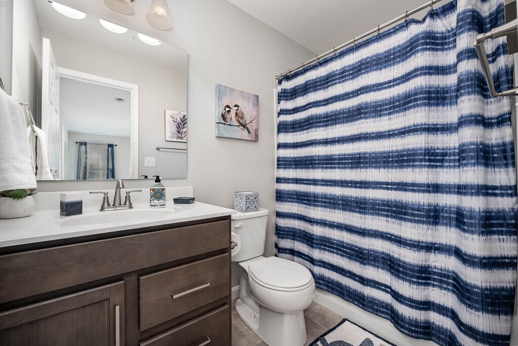 Fully Furnished. Fully Stocked. Includes all utilities and High-speed Internet. When you walk in the front door you will be greeted by a large living space, dining area, and kitchen (with your most needed appliances). Relax and unwind in front of the large smart TV, or cook up a tasty meal with your brand-new stainless steel appliances. The kitchen also has an LG refrigerator that features a "craft icemaker" for your old-fashioned or bourbon. Down the hall from the kitchen, you will find a large pantry, a half bathroom, and a laundry room with a full-size washer and dryer. If you peek in the closet you will find an iron, ironing board, detergent, dryer sheets, and extra cleaning supplies. There are two bedrooms on the main floor which require no steps! When you enter the home, the double bedroom with a small closet is directly to the left. The master suite with a king-size bed, smart TV, walk-in closet, and walk-in shower is located at the back of the home. Take the carpeted steps to the second floor and you will find a large flex space where you can work and play. During work hours, you will have access to a large desk and comfortable chair so you can get down to business. After the sun goes down, enjoy watching your favorite show or movie on the large flat-screen TV or enjoy a game of pool. There are two bedrooms located on the second floor along with a full bathroom with a shower/tub combination. The queen bedroom has a dresser and closet. The king bedroom has a smart TV and closet. HOA rules must be followed and HOA does require 6 month minimum stay