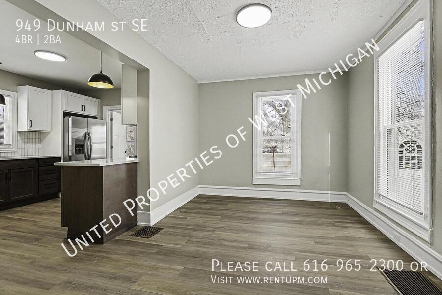 Welcome to 949 Dunham! This beautifully remodeled 4-bedroom, 2-bath single-family home in the heart of the Baxter Community offers an exceptional blend of space, style, and modern comfort. Renovated top-to-bottom, the home features a fresh, contemporary design with updated finishes throughout. Enjoy a spacious, functional layout with five private bedrooms and two full bathrooms, perfect for flexible spacious living. The modern kitchen is equipped with stainless steel appliances and generous kitchen space, while in-home laundry adds everyday convenience. Off-street parking and thoughtful upgrades throughout make this home truly move-in ready. With its prime Baxter location and sleek renovations, 949 Dunham is a standout opportunity — schedule your showing today and see everything this home has to offer! United Properties | | Schedule a showing: View application criteria: Submit an application: View pet policy: Once approved, you can secure your new home with a holding fee equal to one month’s rent, which reserves the property and is applied toward your security deposit. Based on a few items, the total deposit may be one month or one and a half times the rent; if higher, the remaining balance is due before move-in. United Properties of West Michigan has been helping residents find great homes since 2006 and is proud to be West Michigan’s largest property management company with a 4-star-plus Google rating. All residents enjoy the United Properties Resident Benefit Package, which includes: - Monthly credit reporting to the major credit bureaus - Rewards for on-time rent payments - Ongoing pest control protection This added value is $25/month, in addition to the listed rent. Learn more: We’re excited to help you find your next home and make your move-in experience as smooth as possible. Welcome home with United Properties of West Michigan! Porch Front Covered