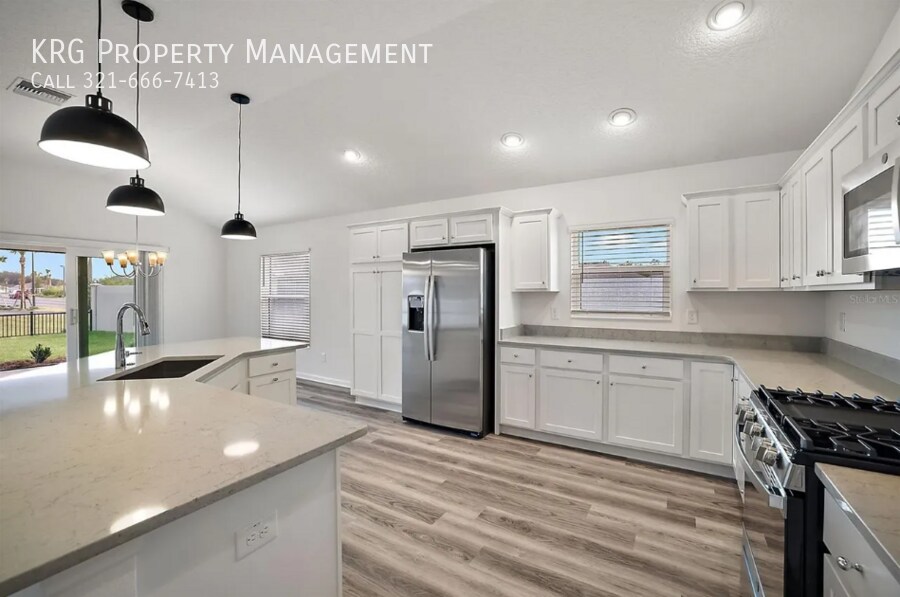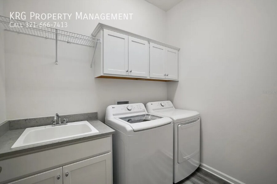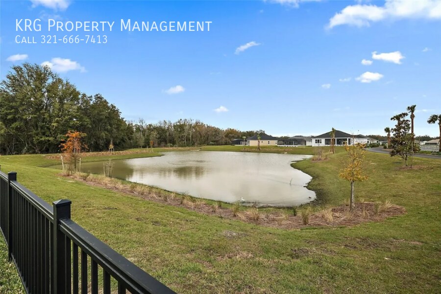 Welcome to this beautiful 2023-built, single-level home featuring an open floorplan, 3 bedrooms, 3 full baths, and a peaceful pond view. Enjoy a bright interior with stone counters, solid wood cabinets, luxury vinyl flooring, and double-pane windows. The home includes a fully equipped kitchen plus an in-home washer and dryer. You’ll love the convenience of an attached 2-car garage, split-bedroom layout, and an inside laundry room. Located in a gated, senior community, residents have access to top-tier amenities: clubhouse, fitness center, pool, dog park, tennis, racquetball, golf, parks, and golf-cart access. Pet-friendly (restrictions apply). As a company, we do business in accordance with the Federal Fair Housing Law and welcome Persons of all Race, Color, Religion, Sex, Handicap, Familial Status or National OriginLaundry Room Washer