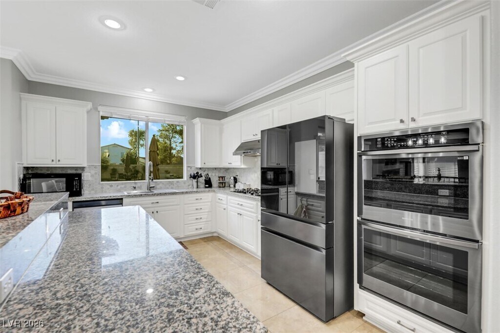 FULLY FURNISHED**Incredible renovated home with beautiful, huge/deep backyard and side yards. Refreshing swimming pool/spa and relaxing patios. Interior has been repainted, and the kitchen is remodeled with new upgraded appliances, including double ovens. Large kitchen island and breakfast bar. 2 upstairs bedrooms have been completely remodeled. Giant primary bathroom with his/her closets. Separate living and family rooms and two large dining areas with a vaulted ceiling, a garage that offers great storage. There are solar panels on the property that provide a discount on monthly power bills. Pride of ownership is easy to see. Home is located in the highly sought-after Stonegate community and has great access to shopping, schools, restaurants, freeway access/airport, and the Raiders training facility.