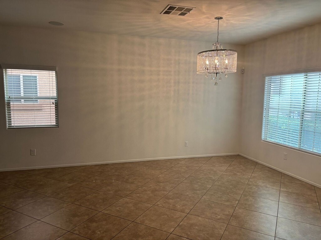 Beautiful gated 3-bedroom, 2.5-bath home near Fort Apache and Blue Diamond. Features tile flooring on the main level, ceiling fans throughout, and a Ring doorbell. Kitchen includes breakfast bar, stainless steel appliances, and dining area. All bedrooms offer walk-in closets. Jack-and-Jill bath with dual sinks. Spacious primary suite with oversized walk-in closet, custom organizers, dual vanities, garden tub, and separate shower. Covered courtyard with brick pavers. Community amenities include pool, BBQ area, playground, and walking paths.