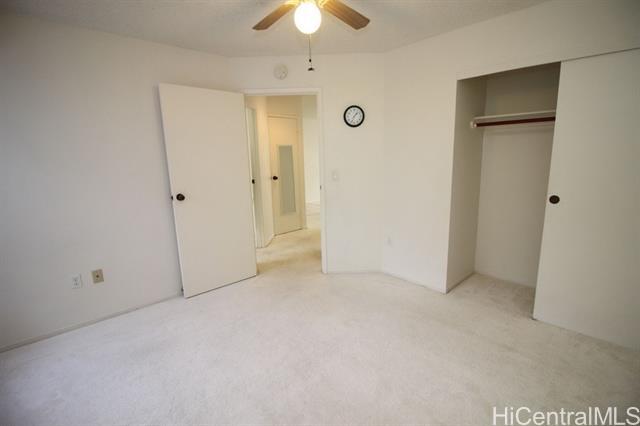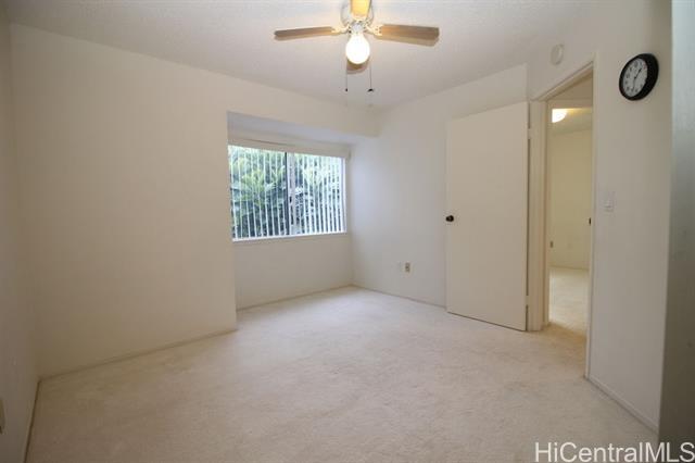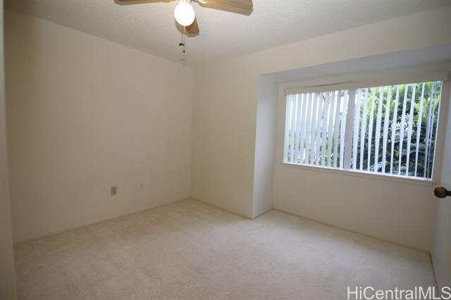 KUMELEWAI GARDENS 1: Townhouse located in beginning of Mililani Mauka. Unit is located on the 2nd Floor. 2 Bedrooms, 1 Bath, 2 reserved open parking stalls. Approximately 739 s.f. Partly furnished with stove, refrigerator, microwave hood, stack washer/dryer. Utilities include water and sewer. Living room, hallway and both bedrooms are wall to wall carpet. Entry way, kitchen and bathroom are ceramic tile flooring. Granite counter tops in kitchen and bathroom. Window A/C located in living room and one bedroom. Large windows for natural lighting. Window covering. Ceiling fan located in one bedroom. Outside storage closet. Guest parking available. Located next to Mililani Mauka Gateway Shopping Center. Must meet income requirements: monthly gross income must be 2.5 times the rent amount and credit score of 650 or higher. Application fee is $20 per applicant (non-refundable). Applicants must view rental in person. All adults 18 years old and older must apply. Non-smoking unit. No pets allowed. Renters insurance required. Please email to request a showing.