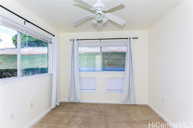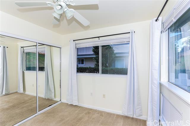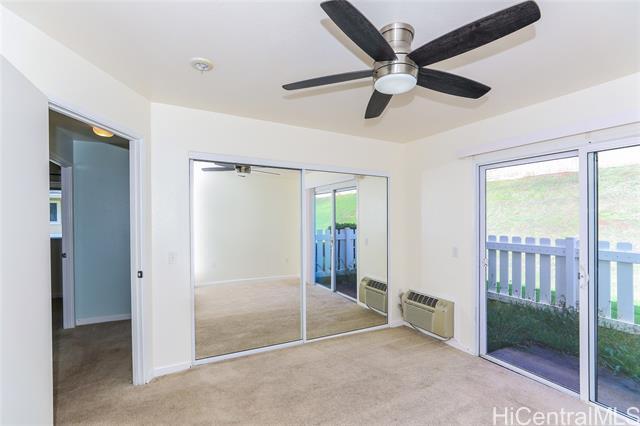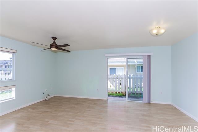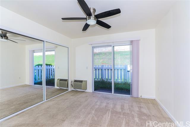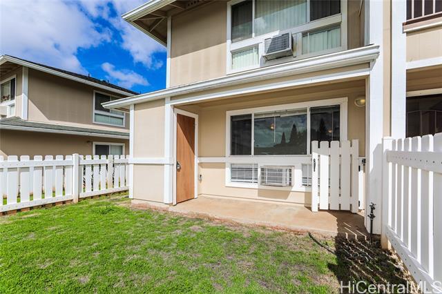 Don't miss this opportunity to rent a rarely available ground-floor corner unit in the highly desirable, gated community of Havens of I’i Vistas! This bright, breezy home offers 967 sq. ft. of living space with a functional open layout, featuring 3 bedrooms and 2 full baths. Comfort is assured with A/C and ceiling fans throughout. Step outside to relax or entertain in your private front and back fenced lanais. The unit comes with two assigned parking stalls (one covered, one open) conveniently located steps from your front door. You'll enjoy the unbeatable lifestyle of Mililani Mauka, with easy freeway access and proximity to top-rated schools, shopping, dining, and parks. Rent includes access to seven Mililani Town Association Rec Centers, which boast six pools, two splash pads, and the amazing Rec Center #7 with a Starbucks and gym. Schedule your showing today for this highly sought-after gem!