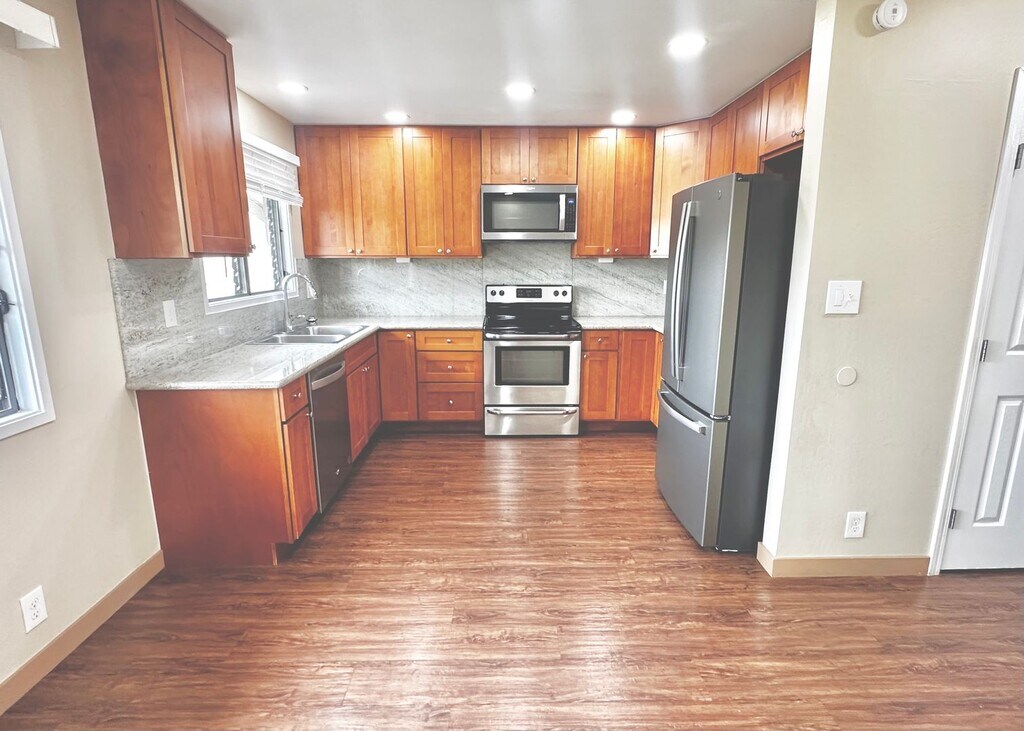 Spacious 2 Bedroom, 2.5 Bath, Townhouse with 2 Parking available (1 covered and 1 uncovered) NOW in Kuahelani. Bright and airy this unit has everything one could need! Primary Bedroom equipped with walk in closet and en suite bathrrom. Kitchen has ample cabinetry and stainless steel appliances: Range w/ Oven, Refrigerator, Dishwasher, Microwave Hood. Additional Features include Washer/Dryer INSIDE the unit, lanai space w/ plantar boxes. Ideally located next to the Mililani Golf Club and has a community pool to enjoy. Mililani is a highly-desired area near base, Costco, shopping centers, restaurants, freeway access, and more! NO SECURITY DEPOSIT OPTION (*MUST QUALIFY): Approved Applicants have the option of enrolling in a "Zero Security Deposit Option" for a one-time upfront fee. View more details here: STATUS: Vacant AVAILABILITY DATE: NOW PET RESTRICTIONS: NO PETS SMOKING: No smoking is allowed on the premises. MOVE-IN/HOLD FEE: Approved applicants will pay prorated monthly rent plus 1mo. security deposit for their move-in date. APPLICATION INSTRUCTIONS (HOW TO APPLY): - Ensure that you have all the required documents handy (see application requirements) - Click Apply Now - Complete the Online Application Form - Pay the Application Fee w/ Credit or Debit Card REQUIREMENTS AND CRITERIA: View our Rental Criteria Here: AREA INFORMATION: Mililani FLOORING: Tile, Vinyl, Carpet GARAGE/PARKING: 2 assigned Parking Stalls KITCHEN/LAUNDRY APPLIANCES INCLUDED: Range w/ Oven, Refrigerator, Dishwasher, Microwave Hood, Garbage Disposal, Window AC Unit, Washer/Dryer PROPERTY TYPE: Townhouse UTILITIES INCLUDED: Trash/Refuse & Water/Sewer. Tenant to pay for all other utilities (including Electric & Cable/Internet) YEAR BUILT: 1973 *Application, Lease Terms, & Fees* APPLICATION FEE: Non-refundable, $50 per applicant 18+ years old APPLICATION TURNAROUND TIME: 2-3 business days LEASE LENGTH: 1 YEAR LEASE TO PURCHASE OPTION/SPECIAL LEASE PROVISIONS: None available PROPERTY MANAGER: Kiani M. Kaahaaina (R) | Elevate Hawaii Management LLC **All information is deemed reliable but not guaranteed and is subject to change. Tenant to verify all material facts including but not limited to room sizes, utilities, schools, association rules, community amenities, fees, and costs, etc.**