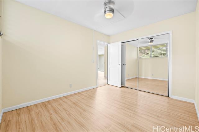 Enjoy cool breezes and peaceful greenery in this well-maintained 2-bedroom, 1-bath condo located in the desirable Waikalani Woodlands community in Mililani. This unit offers a functional layout with an open living and dining area, abundant natural light, and tranquil views surrounded by lush landscaping. The kitchen features ample cabinetry and counter space, while both bedrooms are generously sized with ceiling fans for comfort. The unit includes one assigned parking stall with nearby guest parking. Community amenities include a swimming pool, BBQ area, playground, laundry facilities, and 24-hour security. Conveniently located near shopping, dining, schools, parks, Schofield Barracks, Wheeler Army Airfield, and easy access to H-2. Ideal for those seeking a quiet, centrally located Mililani lifestyle.