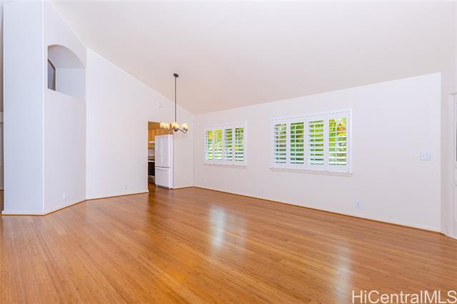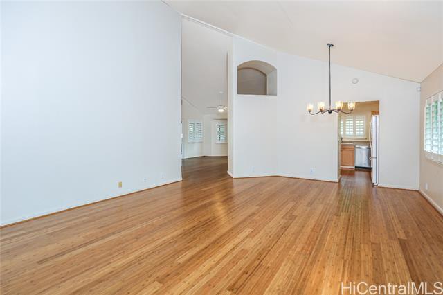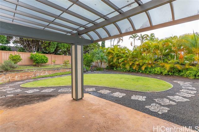 Now available is this 3 bedroom 2 full bath single level rental house with 2 car garage and fenced yard in Mililani Mauka. New bamboo wood style flooring has been installed throughout along with fresh interior paint. The home also features a spacious open kitchen with well-maintained countertops and cabinets. There is plenty of room to relax outside in the large backyard or covered patio lanai. Large living and dining room space with vaulted ceilings. Close to schools, Schofield, and quick highway access. The house is located in the lower part of Mililani Mauka that features larger yards than upper Mauka homes. Surrounding houses have desirable curb appeal and properties in this block rarely come up for rent or sale. Tenant is responsible for Electricity, Water/Sewer bill, Cable/Internet. Minimum of 1 year lease, no pets allowed. No smoking/vaping.