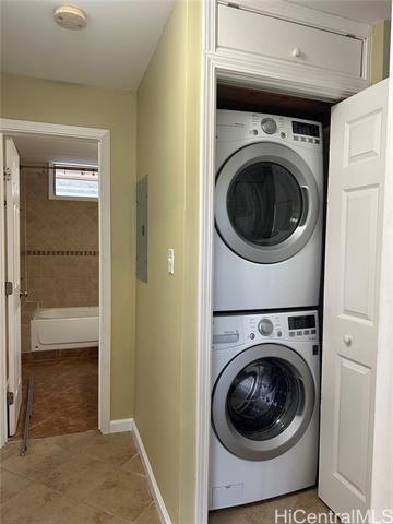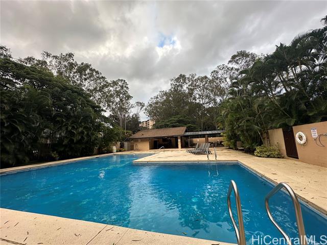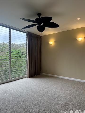 Lovely high floor 2 br/1 ba apartment with granite kitchen & bath countertops, kitchen & bath tile floors & stainless appliances (range, microwave hood, refrigerator, dishwasher, disposal); washer/dryer in unit. New carpet in bedrooms. Bedrooms also have Closet Maid storage system. Private lanai overlooks dense forests which provides seclusion and serenity. Waikalani Woodlands has a resident manager, security guards & cameras in elevators. Amenities include salt water pool, lounge chairs, party pavilion, bbq, walking/biking trails & a large lush open space with picnic tables. Sewer/water, parking, trash, yard service & amenities are included with rent. Tenant pays electricity, cable/internet. Renter's Insurance required. Non-refundable application fee of $35 per adult occupant. The complex is located in beautiful, undisturbed Launani Valley close to H2, Mililani Town, Schofield Barracks, Wheeler Air Station & Queens Medical Center Wahiawa. No smoking & no pets please.