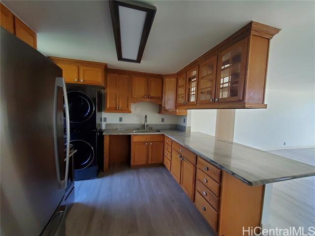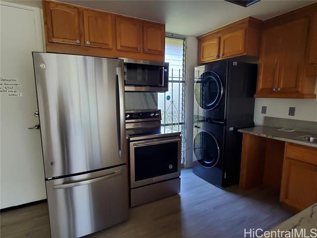 Highly desirable and rarely available 3-bedroom, 2-bath Waikalani Woodlands condominium. Fully remodeled in 2019 * Brand new, appliances used 1 year by previous tenant. Appliances include Full size Washtower" Washer & Dryer, Self Cleaning Range Oven with Convection setting, Microwave and Refrigerator. Luxury vinyl flooring with high baseboards throughout. Permitted and Board approved enclosed lanai for larger living area. Custom solid wood cabinets Huge stone kitchen countertop with room for seating *Custom closet organizers *Custom window treatments. Highly desirable quiet and private 9th floor corner-end unit in "D" building on the north side of the development. Ground floor side-by-side dual parking stalls in Parking Garage. Vacant ready to move, easy to show."