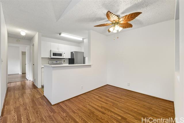 Discover the charm of Launani Valley with this stylishly updated 2-bedroom, 2-bath townhouse! Perfectly positioned at the valley's entrance, this move-in ready home has fresh paint, upgraded finishes, and inviting spaces throughout. Enjoy open living with laminate floors, relax on your private lanai with tranquil views, and take advantage of two covered parking stalls. Just steps away, unwind at the community pool and recreation area—everything you need for comfortable valley living is right here!
