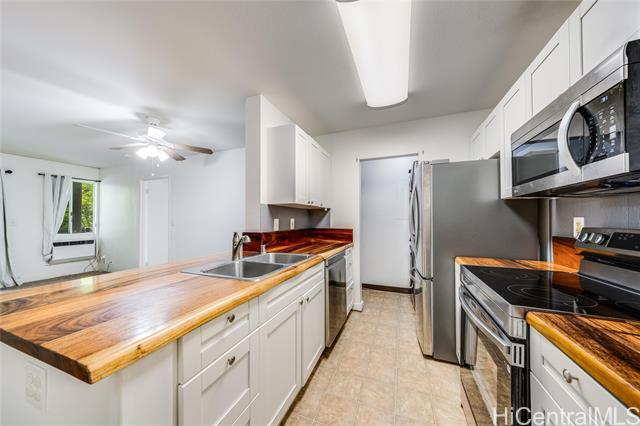 Welcome to Launani Valley living! This charming 3 bed, 2 bath ground-floor unit offers the perfect blend of comfort and convenience. Step inside to find a spacious layout with a mix of carpet and luxury vinyl plank flooring, a modern kitchen featuring stainless steel appliances and butcher block countertops, and a private lanai perfect for enjoying your morning coffee surrounded by lush greenery. You'll love the two parking stalls (one covered, one uncovered) and the full suite of appliances including refrigerator, oven, microwave, dishwasher, washer/dryer, ceiling fans, and air conditioning for year-round comfort. Located in the peaceful and tree-lined Launani Valley community, residents enjoy access to a swimming pool, hot tub, tennis court, playgrounds, and walking paths. Just a short drive to Schofield Barracks and Wheeler Army Airfield, this location is ideal for military families or anyone looking to enjoy a central Mililani lifestyle. Nearby attractions include Mililani Town Center, hiking trails, parks, and easy access to H-2 for commuting.