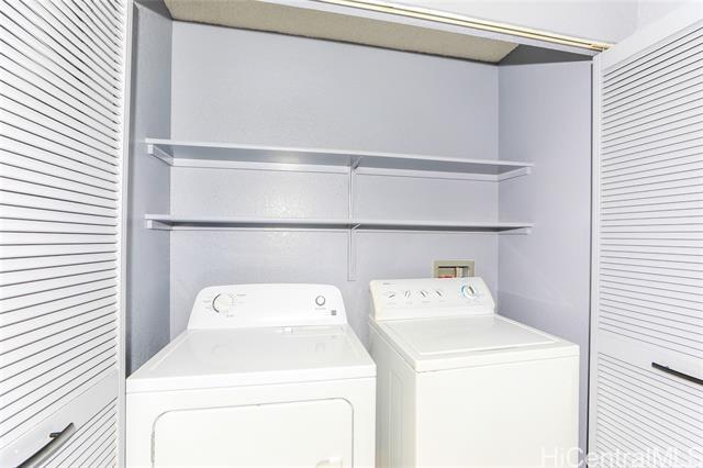 Discover this cozy upstairs, corner-end 1-bedroom rental unit in Mililani Terrace, which is available and ready for immediate move in! This corner-end home offers an exceptional position with no neighbors behind or directly in front, creating a peaceful and comfortable living environment. Enjoy the lush, landscaped surroundings visible through the large picture windows in both the living room and bedroom, allowing natural light to fill the space throughout the day. The unit also includes the convenience of a full-sized washer and dryer, making daily living even easier. Located just a short distance from Mililani Town Shopping Center, you’ll have quick access to dining, stores, shops and everyday essentials. Commuters will appreciate the easy freeway access and let's not forget as a Mililani Town resident, you’ll have the privilege of enjoying the community’s well-maintained recreation centers. Don't wait to secure your new home in Mililani today! There is a $35 application fee per adult; 18+ years, renter's insurance is required, no smoking, and no pets.