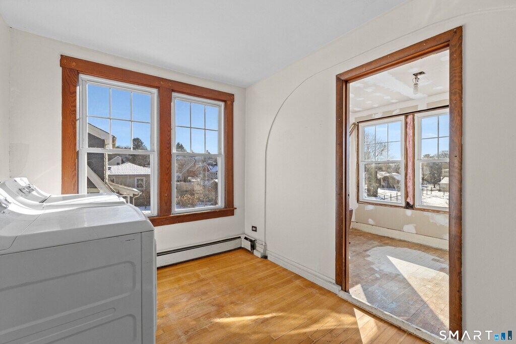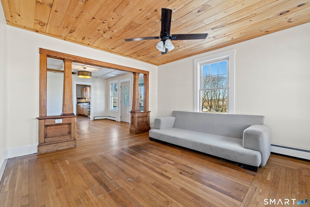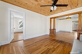 Call for Availability - Charming and spacious rental featuring beautiful hardwood floors, original woodwork, and abundant natural light throughout. The updated kitchen offers stainless steel appliances, natural wood cabinetry, tile backsplash, and ample counter space. Open living and dining areas are highlighted by classic columns, high ceilings, and warm wood accents, creating a bright and inviting layout. Multiple rooms showcase wood-plank ceilings, adding character and warmth. In-unit laundry includes washer and dryer for added convenience. Large windows throughout provide excellent light and neighborhood views. Exterior features include a level yard and convenient access to nearby amenities. Well-maintained and move-in ready. Schedule your showing today. MLS# 24145469
