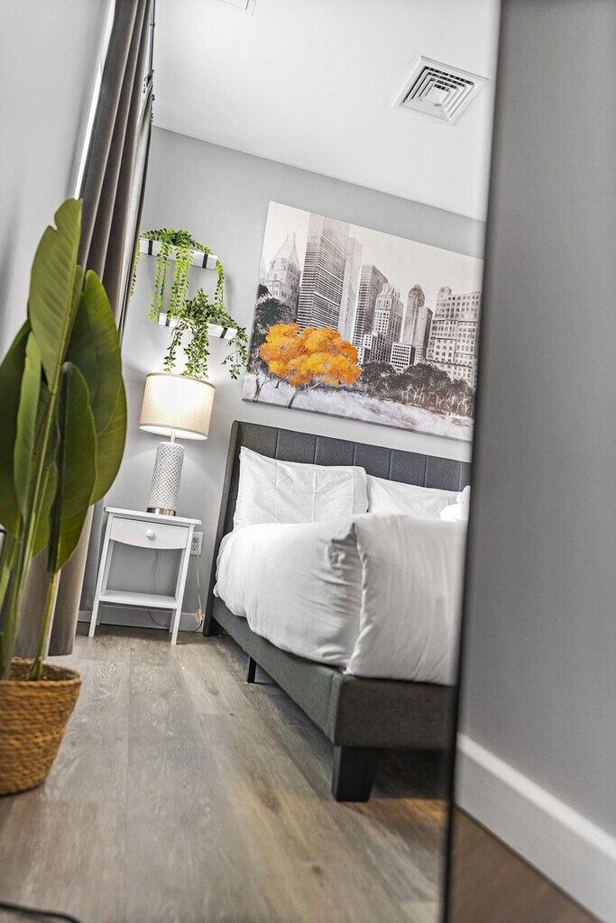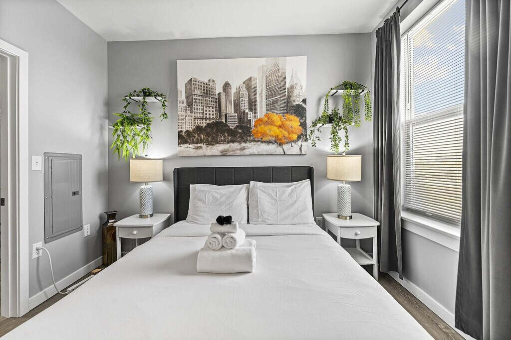 Feel at home in this apartment located in Everett. This apartment features a fully equipped kitchen and complimentary washer and dryer. Parking is available for one vehicle only, and you will be assigned one parking spot. No trailers, RVs, or commercial vans are allowed. Early check-in and late check-out are available for a fee and can be requested. The apartment is located 11 minutes' drive to Seaport Boston, 15 minutes' drive to Boston Commons, 10 minutes' walk to Encore casino, 15 minutes' drive to Boston University, MIT, Harvard, Suffolk, and Northeastern, 10 minutes' drive to Tufts, 13 minutes' drive to Logan Airport and 15 minutes' drive to Fenway park. Street noise may be present due to the location. Parties are prohibited, and any attempt to throw a party will result in immediate termination and charges will be pressed. Smoking is not allowed inside the apartment or the building. Pets and emotional support animals are not allowed. Check-in time must be adhered to. A copy of your ID is required until check-out. Registration Number: C [SI]