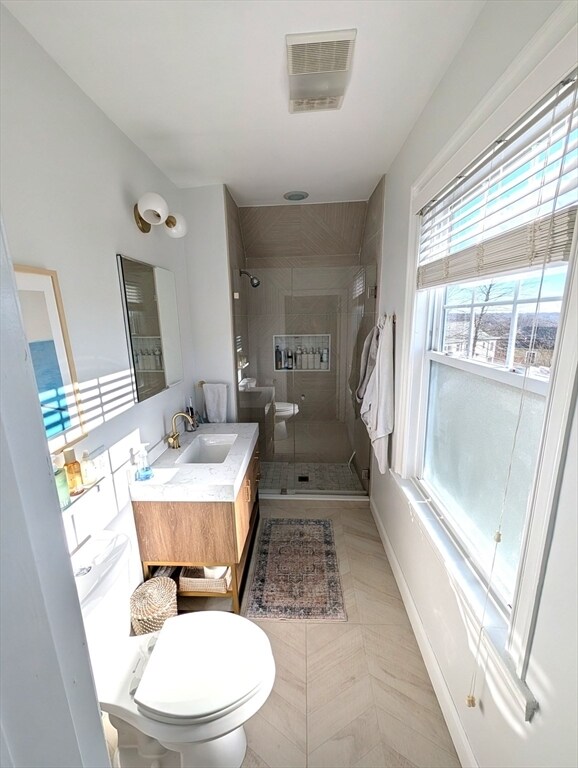 Available 4/15. This 2-bed,2-bath condo in Roslindale’s Prospect Hill sits on the first floor of a Victorian two-family converted in 2015. This home features wood floors,high ceilings,central A/C,in-unit laundry,and off-street parking. Living room with built-in shelving opens through pocket doors to an eat-in kitchen with a large granite island and ample cabinetry. The primary bedroom offers a wide closet,brand new en-suite bath,and peaceful yard views,while the second bedroom is ideal for guests or a home office. Additional highlights include extra foyer storage,a private basement storage,a private side porch and a large shared yard with garden beds. Just 0.5 miles from Roslindale Square,the farmers market,and the commuter rail. 700+credit required. Tenants are responsible for utilities. One small pet MAY be considered. MLS# 73485868