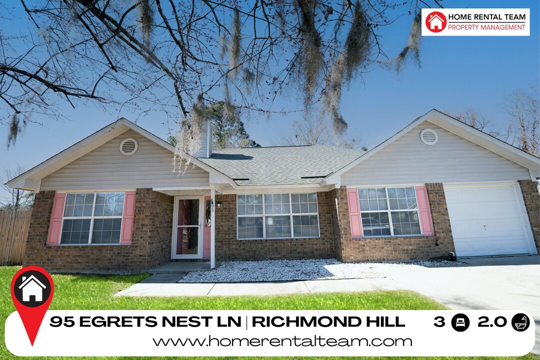Welcome home to 95 Egrets Nest Lane W! This lovely all-brick home features - 3 Bedrooms, 2 Bathrooms + BONUS Room. With a spacious layout, fresh updates, and a prime location in Richmond Hill, it’s ready for you to move in and make it your home. Home Features: - Bonus room can serve as a 4th bedroom, office, or playroom - Low-maintenance flooring for an easy care throughout the home, no carpets - Large family room perfect for gatherings and relaxation - Fireplace is present but not for use - Updated kitchen countertops, fresh and functional for everyday cooking - Split floor plan, the master suite on one wing, two bedrooms on the other for privacy - Separate laundry room for added convenience for household organization - One-car garage, secure parking and storage - Fenced backyard on a large cul-de-sac lot - Plenty of space for pets, play, or your own garden - Boat & RV parking allowed on site – Extra flexibility for outdoor enthusiasts - Close to schools and everyday essentials within easy reach - Near Sterling Creek Park & J.F. Gregory Park – Enjoy running trails, recreation, and community events From the spacious family room to the fenced backyard with room to grow, this home is designed for both comfort and convenience. Whether you’re looking for a peaceful retreat or a place to entertain, 95 Egrets Nest Lane W offers it all in a prime Richmond Hill location. 3D Tour Link: Please visit our website to view this home, contact us, and apply.