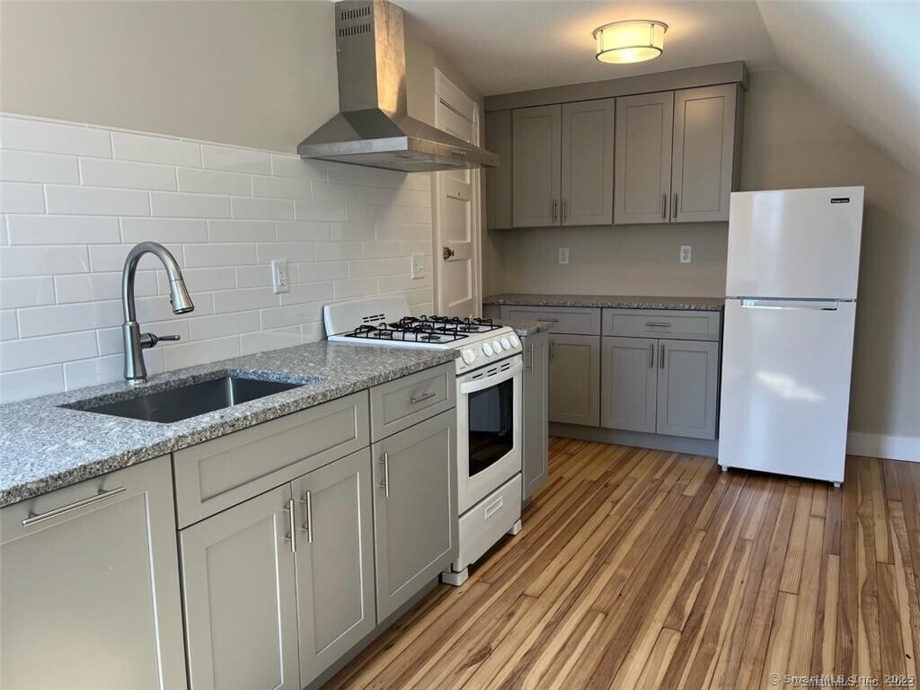 Call for Availability - Completely remodeled apartment in the Historic West End of Hartford! this one bedroom 3rd floor unit has hardwood floors, brand new kitchen with gas stove and a dishwasher, new soft-close cabinets and drawers, and space for a table. The living room has exposed rafters to add charm, plenty of room for lounging and the brand new bathroom is nicely appointed. Upstairs in the loft is a cozy spot for your bedroom and has two closets. The best part is ALL UTILITIES ARE INCLUDED!!! This unit has central air, an off street parking spot, and coin operated laundry in the basement. Located just one block from Elizabeth park, and close to restaurants and shopping. MLS# 24141936