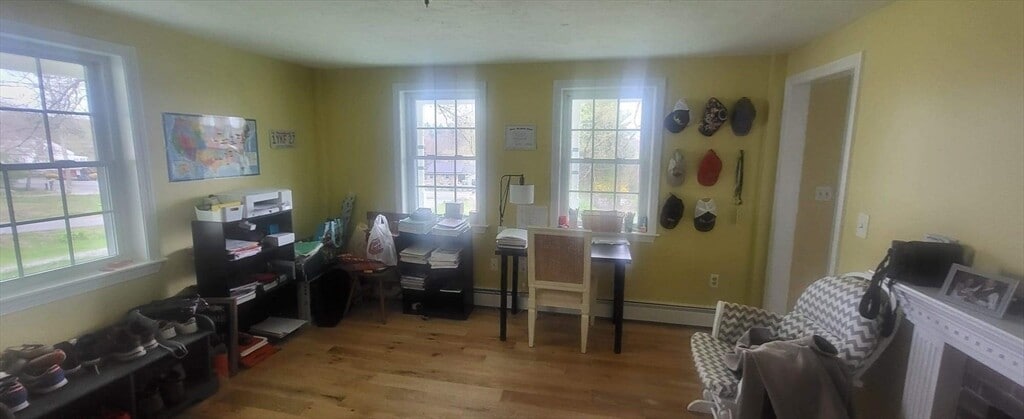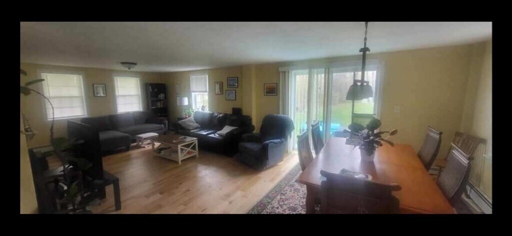 This Unit is the front half of a large farmhouse,the main house if you will. Having undergone a recent renovation,the first floor consists of an open space layout,with a recently renovated kitchen and new hardwood flooring. The Master has an en suite bathroom and walk in closet. There are 4 decorative fireplaces,including in the kitchen. Outside you will enjoy your private front porch that over looks the expansive front lawn. Feel free to pick the blueberries as they ripen. It's a great spot that every tenant has loved! MLS# 73441673