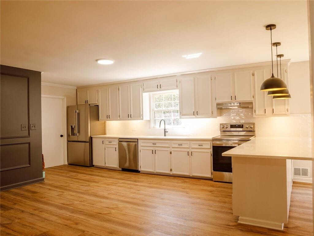 Welcome to this beautifully renovated 4-bedroom,3-bath ranch home with a full finished basement,perfectly situated in the heart of Kennesaw and zoned for top-rated Cobb County schools. Designed for modern living,this spacious home offers comfort,flexibility,and an unbeatable location just minutes from Downtown Kennesaw,KSU,I-75,and Town Center Mall. The main level features an open-concept living area filled with natural light,along with three bedrooms and two full bathrooms. The updated kitchen boasts stainless-steel appliances,quartz countertops,and ample cabinet space,making it ideal for cooking and entertaining. Step out onto the expansive upper deck,perfect for outdoor dining or relaxing while overlooking the private backyard. The full basement adds exceptional versatility,offering a fourth bedroom,an additional full bathroom,and multiple living or flex spaces - ideal for a guest suite,home office,media room,or play area. Located in a quiet,family-friendly neighborhood close to parks,dining,shopping,and excellent schools,this home delivers the perfect blend of convenience and comfort. Non-smoking. Dogs are negotiable. Income must be at least 3 times the monthly rent and credit score of 650 or above. MLS ID 7724838