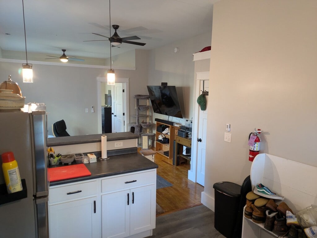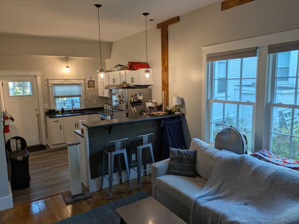 Welcome to this stunning 1-bedroom, 1-bathroom apartment located in the charming town of Yarmouth, ME. This first-floor unit boasts an open floor plan that is both spacious and inviting. The high ceilings and wood floors add a touch of elegance and sophistication to the space. Recently remodeled throughout you will find the kitchen has ample white cabinets and sleek stainless steel appliances. The full bath has also been updated, offering modern fixtures and finishes. The convenience of off-street parking is an added bonus. With its blend of style, comfort, and convenience, this apartment is a place you'll be proud to call home. Discover your new home in the heart of Yarmouth near Main St and area shops and restaurants. Enjoy outdoor space in the large shared yard. Rent is $1,680. The tenant is responsible for their own heat, hot water and Electricity. The unit is available for December 1st. Contact us today to schedule a tour.