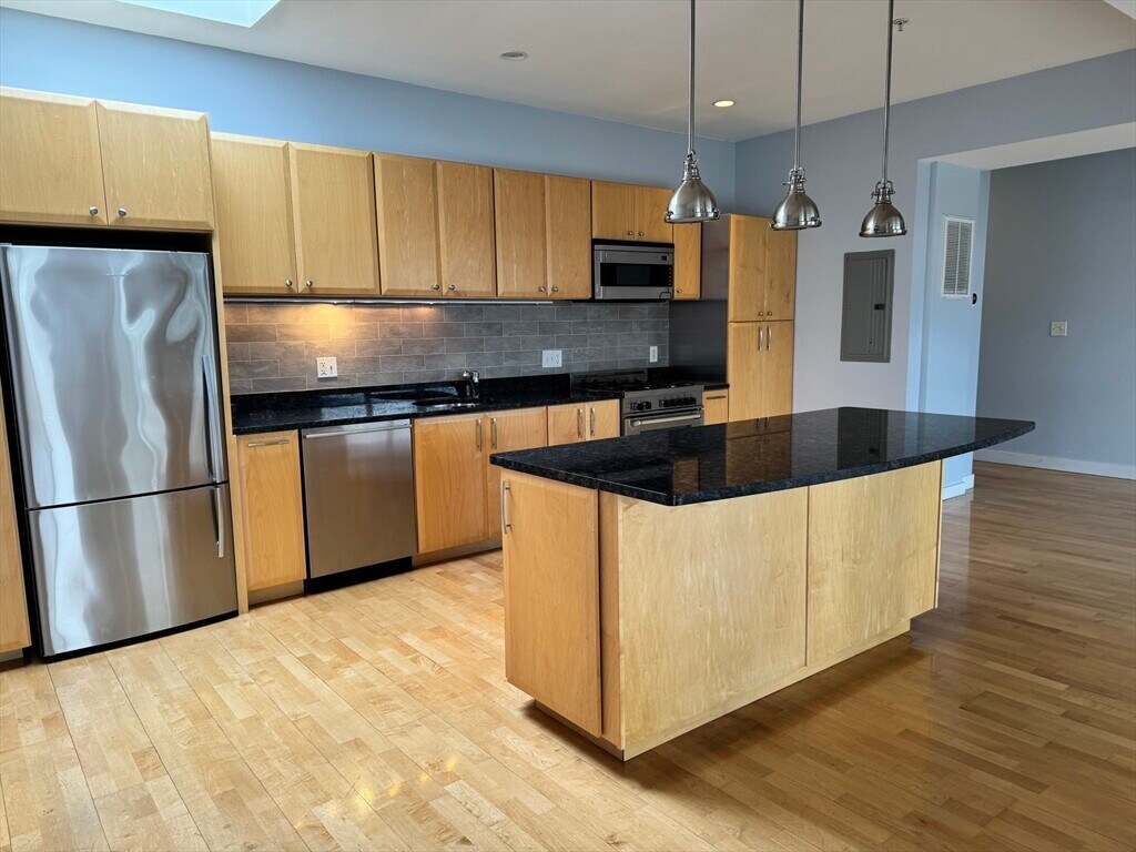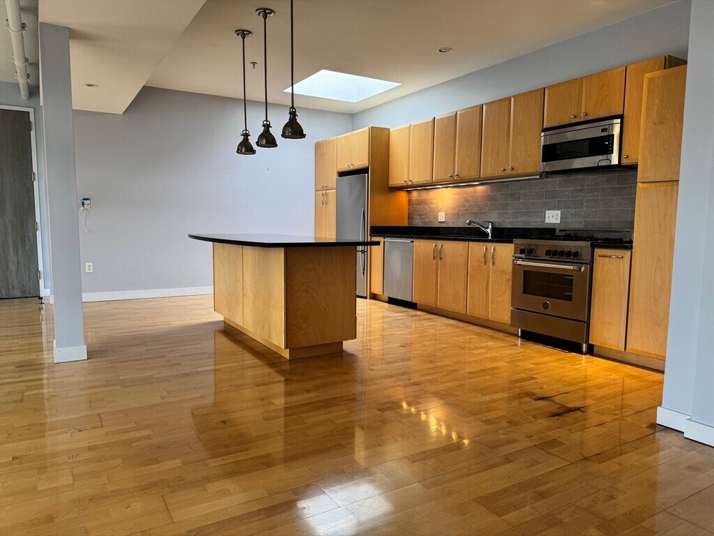 PENTHOUSE LOFT WITH PRIVATE ROOF DECK - This contemporary loft offers a wide open floor plan,features floor-to-ceiling windows,and a skylight,filling the space with natural light! Entertain effortlessly with a spacious private roof deck with skyline views. The bedroom ensures privacy without losing the airy loft vibe. Features include 1 off-street PARKING space,Central A/C,and in-unit W/D. The kitchen has stainless steel appliances,modern cabinetry,and ample storage. Conveniently close to parks,restaurants,breweries,I-93,and the T,with easy access to South Boston,Downtown,and Cambridge. MLS# 73426280
