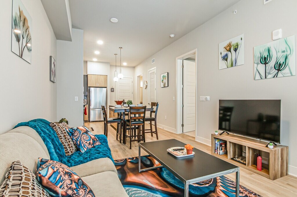 Feel at home in this centrally located apartment, making it easy to plan your visit. To park inside the community, car information must be received no later than 8 pm for registration. If you check in later, you will need to use one of the paid parking garages in the area, and your car will be registered the next day. [SI]