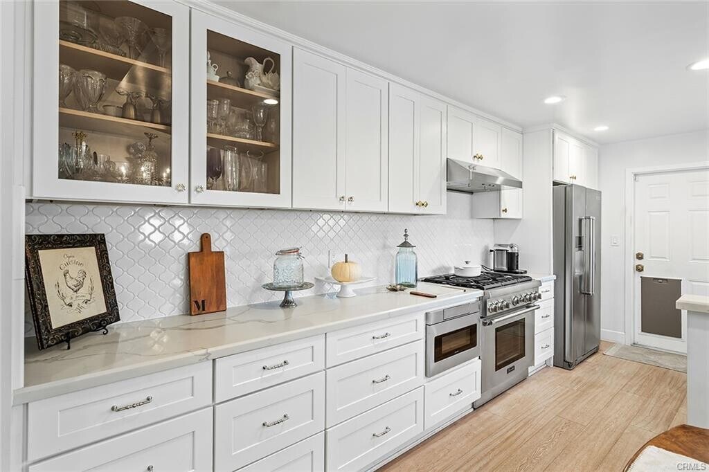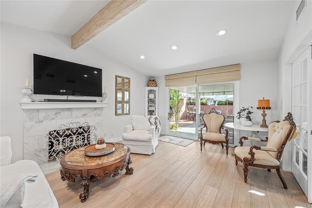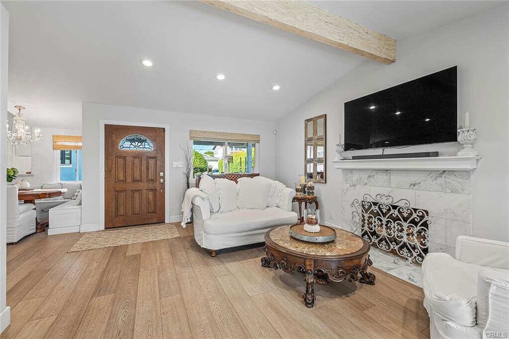 - Welcome to this beautifully remodeled 3-bedroom, 3-bath home on the desirable Hill in Seal Beach, where coastal charm meets modern elegance. The home’s inviting exterior features pristine landscaping, a covered brick patio, and a beautiful front porch. Inside, an open floor plan is enhanced by white oak flooring throughout. The stunning kitchen offers quartzite countertops, white tile backsplash, shaker cabinets, and Thermador appliances, seamlessly connecting to a dining area with a custom built-in nook. The living room features a marble-tiled gas fireplace and opens to a serene south-facing backyard with tall privacy hedges, a covered dining area, multiple sitting spaces, garden paths, and a fountain. All three bedrooms have the same beautiful flooring, with two offering en-suite bathrooms accented by classic white subway tile. The third bedroom—with French doors—functions perfectly as a guest room or office. The hall bath is finished with elegant white tile wainscoting and ceramic flooring. Located within walking distance to Main Street, the beach, McGaugh Elementary, and local shops, this home also belongs to the award-winning Los Alamitos School District and offers easy access to the 405, 605, and 22 freeways. Experience the best of Seal Beach lifestyle in this exceptional home. Listing provided by: Jessica Panzica of Keller Williams Pacific Estate LA State License 1854556 Listing posted by Orange County [SYNDID 4146557 12142025]