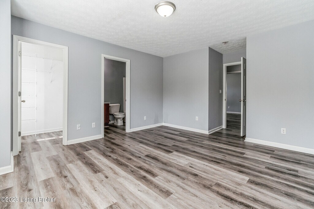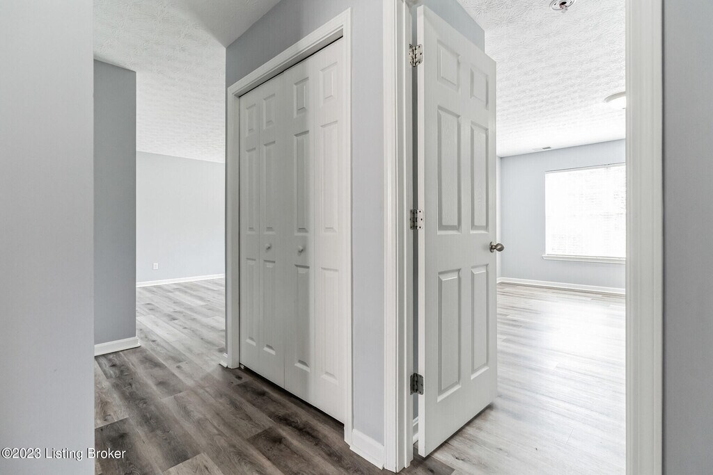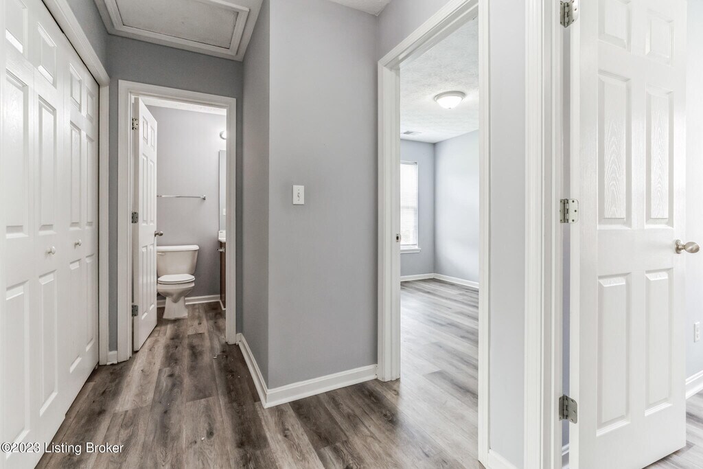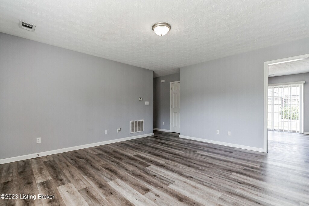 This must-see 3-bedroom,2-bathroom single-family home is situated on a corner lot near multiple shopping centers with easy access to the Gene Snyder Freeway. The home features new LVP flooring throughout,a spacious primary bedroom with an en-suite bathroom and walk-in closet,and a concrete patio for outdoor enjoyment. Additional highlights include first-floor washer and dryer hookups,an oversized attached two-car garage,and a kitchen equipped with an oven and refrigerator.