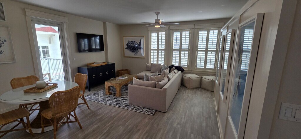 Welcome to your dream beach getaway at the recently remodeled condo near Baytown Wharf, located in the beautiful Miramar Beach, FL. This stunning one-bedroom, one-bathroom condo offers a perfect blend of comfort and convenience. The condo features a modern gym, on-site tennis courts, and a community pool for your recreational needs. The location is unbeatable, being just a stone's throw away from the vibrant Baytown area, a golf course, and a marina. The condo also boasts an in-unit laundry, ensuring your utmost convenience. Step out onto your private balcony area to soak in the breathtaking views. A unique feature of this condo is the hidden wall bunk beds in the living room, adding a touch of fun and versatility to your living space. This condo is a perfect blend of luxury and convenience, making it an ideal choice for your next home.