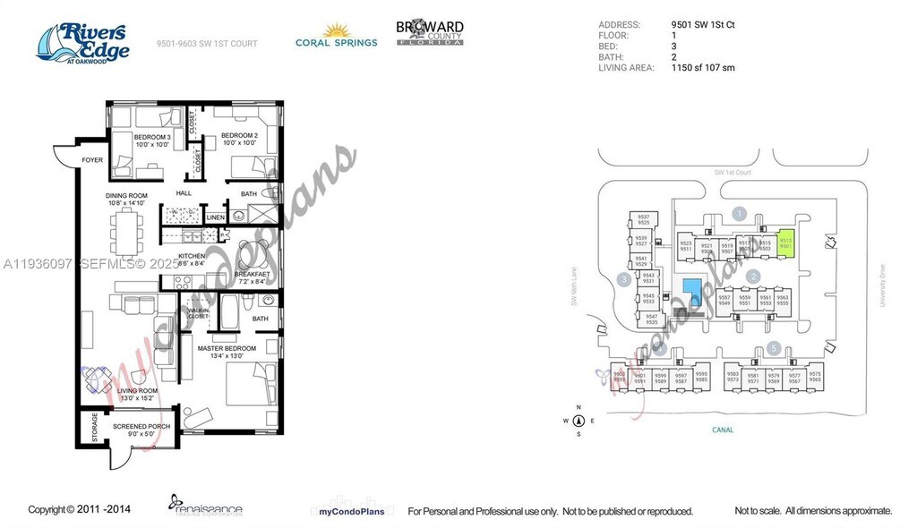 There is currently a 3 Bed 2 Bath Condo for rent with 1,150 sq ft listed at 9501 SW 1st Ct. It is Available Now.