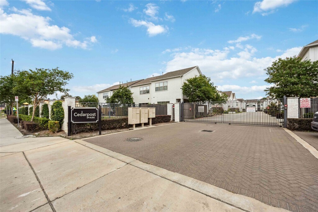 This beautifully crafted two-story home features 3 bedrooms,with the spacious primary suite located upstairs for added privacy. Situated in Cedar Post Park—a gated community of 40 homes in the heart of Spring Branch—you’ll enjoy quick access to I-10 and Blalock. The luxurious primary suite includes a sleek en-suite bath with a freestanding soaking tub,double vanities,and modern finishes. The open-concept second-floor living space boasts soaring ceilings—12 feet in the living room and 10 feet throughout the rest—creating an airy and inviting atmosphere. Entertain with ease in the chef-inspired kitchen,equipped with stainless steel appliances,a large quartz island,42" shaker cabinets,and a stylish tile backsplash. Additional features include a built-in surround sound system and a front yard sprinkler system for low-maintenance living. Perfectly blending comfort,style,and convenience,this home is a standout in one of Houston’s most desirable neighborhoods. MLS# 62328181
