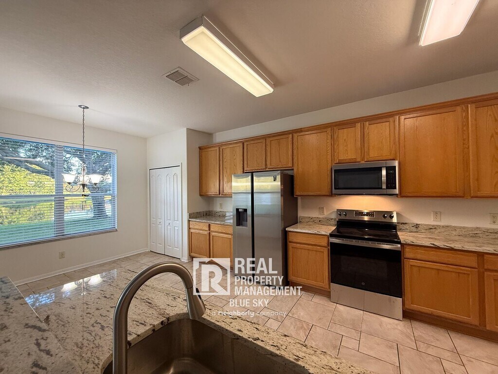 Welcome to this beautifully updated 5-bedroom, 4-bathroom home in the desirable Tierra Del Sol community of Land O’ Lakes. Featuring new luxury vinyl plank flooring, new or nearly new appliances (washer and dryer included), and a mix of granite countertops, this home is designed with modern finishes and comfort in mind. Two bedrooms are connected by a Jack-and-Jill bath, while all bedrooms include ceiling fans and large closets—two with walk-ins. The expansive master suite offers a sitting area, a large walk-in closet, and a spa-style bath complete with a garden tub overlooking the pond, dual sinks, and a separate stand-up shower. Downstairs bedroom includes large walk-in closet and full bathroom. HIGHLIGHTS - 5 Bedrooms / 4 Bathrooms - Bonus Room - New LVP flooring throughout - Updated appliances – washer and dryer included - Granite countertops, new sinks and faucets - New Faux Wood blinds installed throughout - All bedrooms include ceiling fans; three with walk-in closets - Jack-and-Jill bath plus full hall bath - Master suite with sitting area, oversized bath, large walk-in closet, and pond views COMMUNITY FEATURES Tierra Del Sol is a sought-after community in Land O’ Lakes, offering a peaceful neighborhood setting with convenient access to schools, shopping, dining, and major commuter routes. TERMS - 12 month lease - A Resident Benefits Package ($50/month) and renter’s insurance are required - No Pets - Move-in costs will include 1 full month rent for first month; Security deposit equal to 1 month's rent; $75 lease generation fee; Last month's rent or increased deposit may be requested. AMENITIES: * Attached Garage * Central air conditioning * Central heat * Patio * Pond View By submitting your information on this page you consent to being contacted by the Property Manager and RentEngine via SMS, phone, or email.